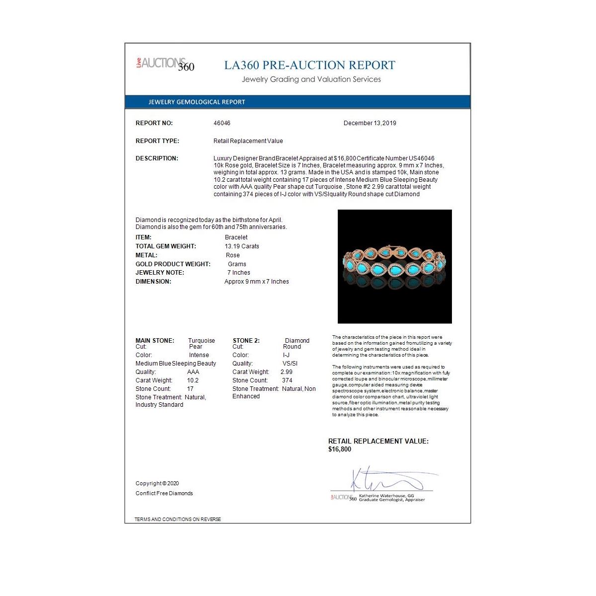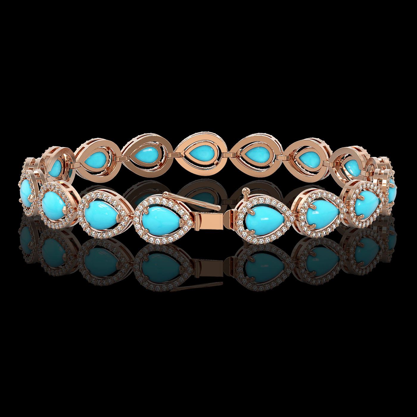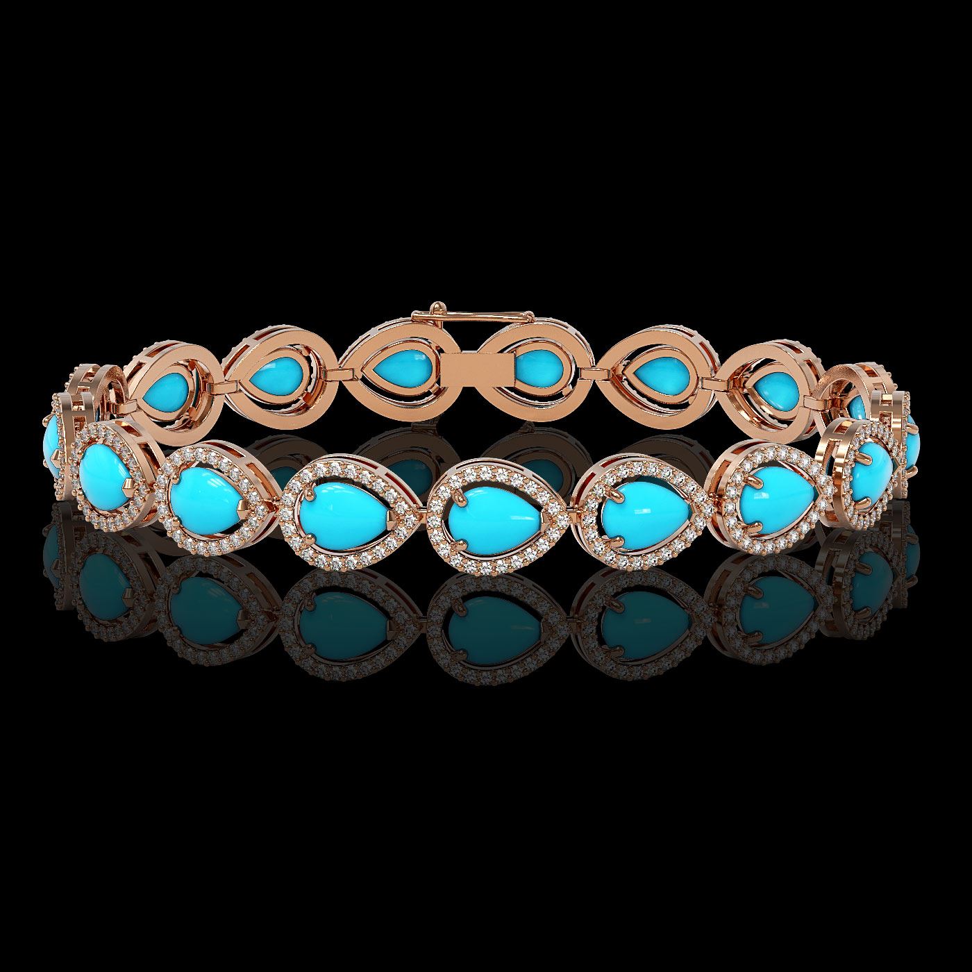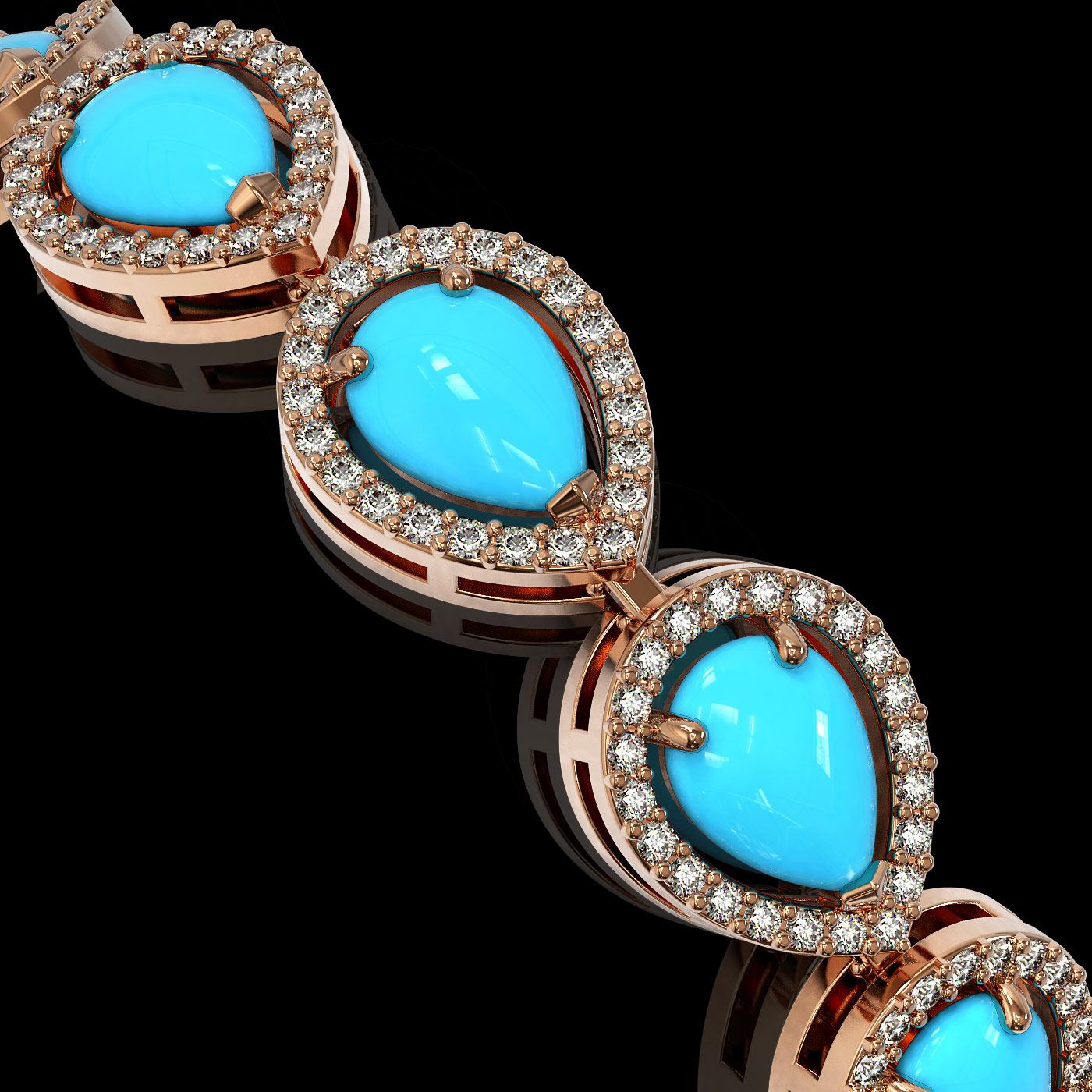 REF-305H8R - SKU: 46046 ---- 13.19 ctw Turquoise & Diamond Micro Pave Halo Bracelet 10k Rose Gold