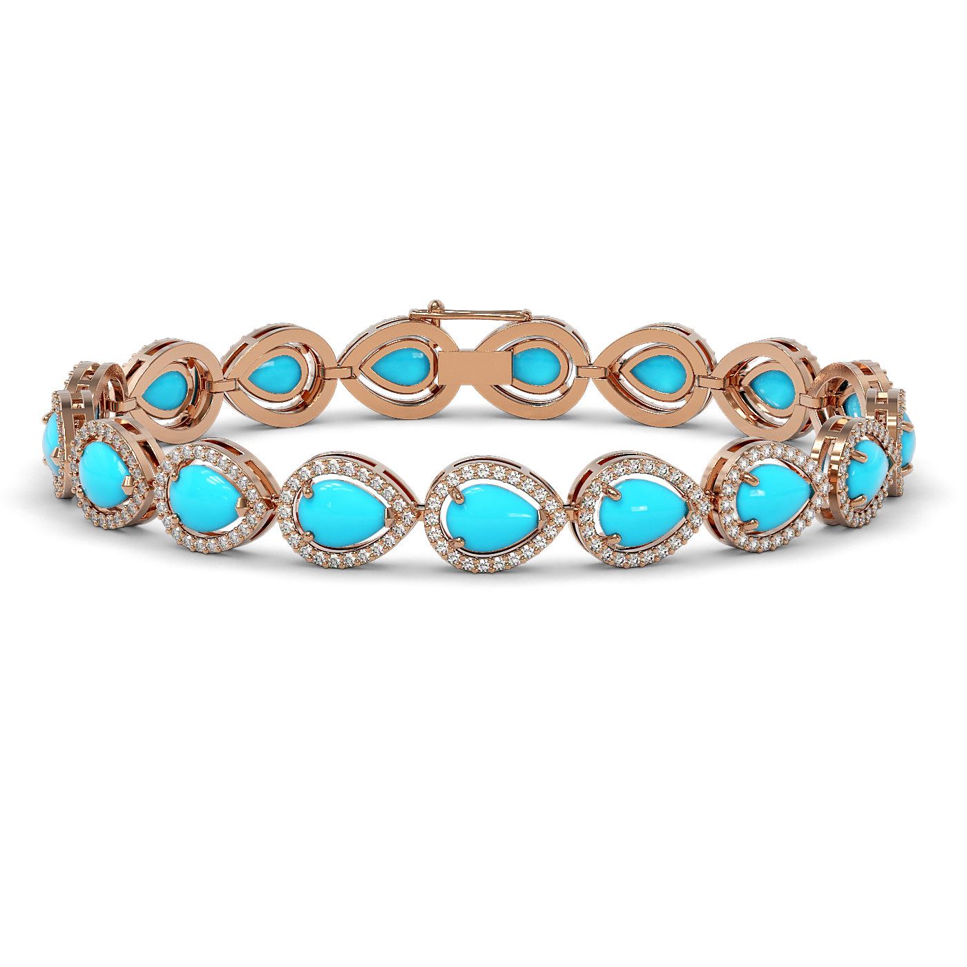 REF-305N8F - SKU: 46046 ---- 13.19 ctw Turquoise & Diamond Micro Pave Halo Bracelet 10k Rose Gold