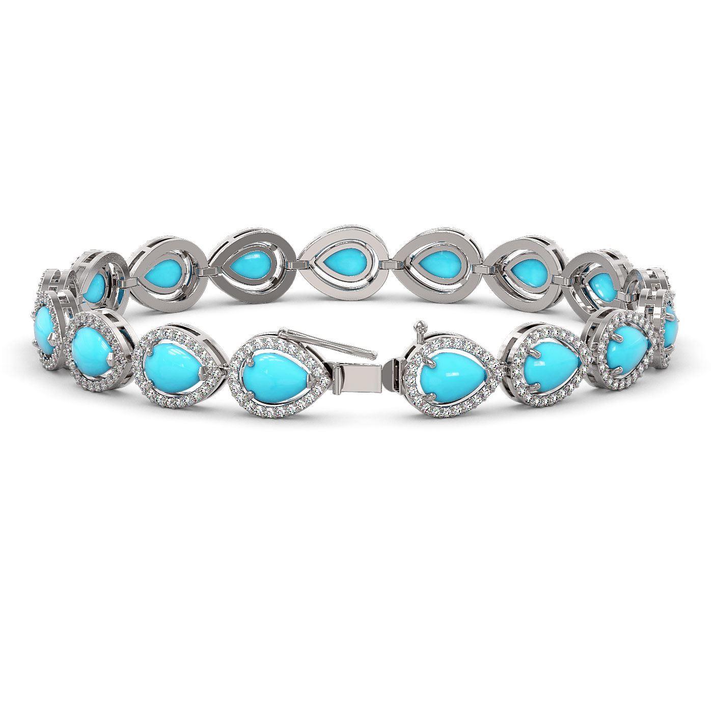 SKU: 46045 ---- 13.19 ctw Turquoise & Diamond Micro Pave Halo Bracelet 10k White Gold