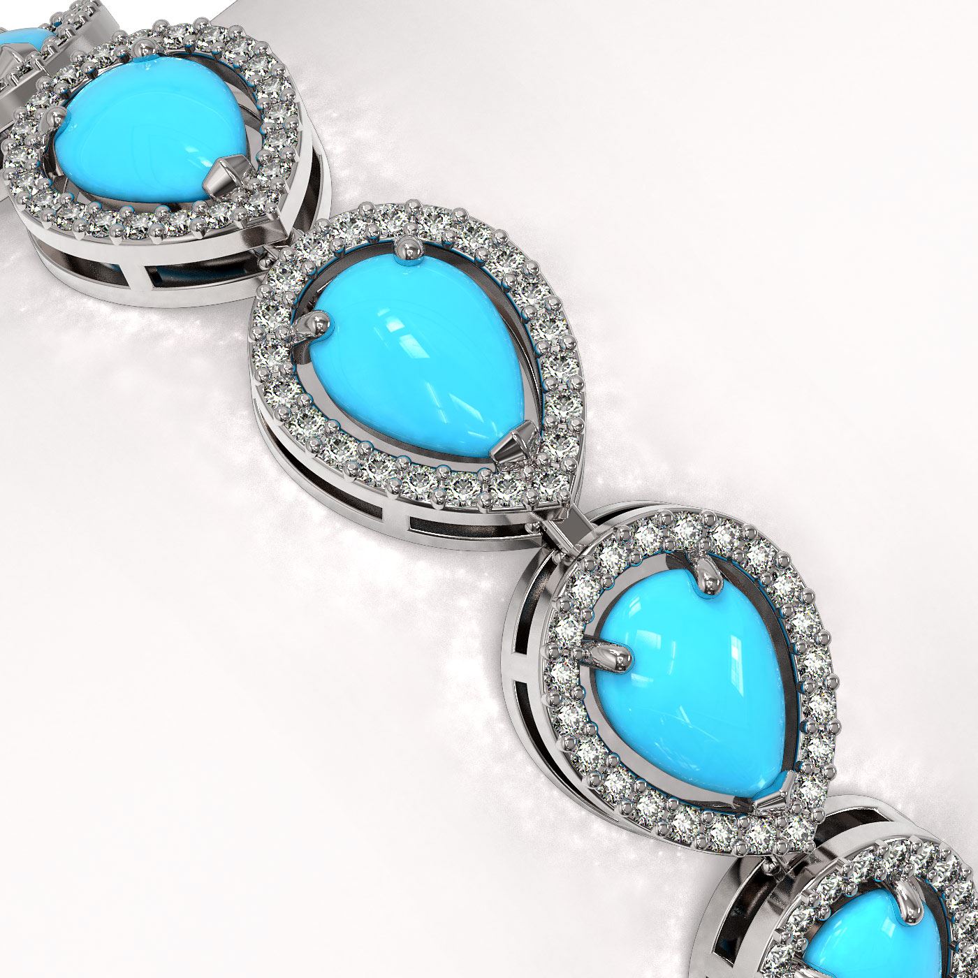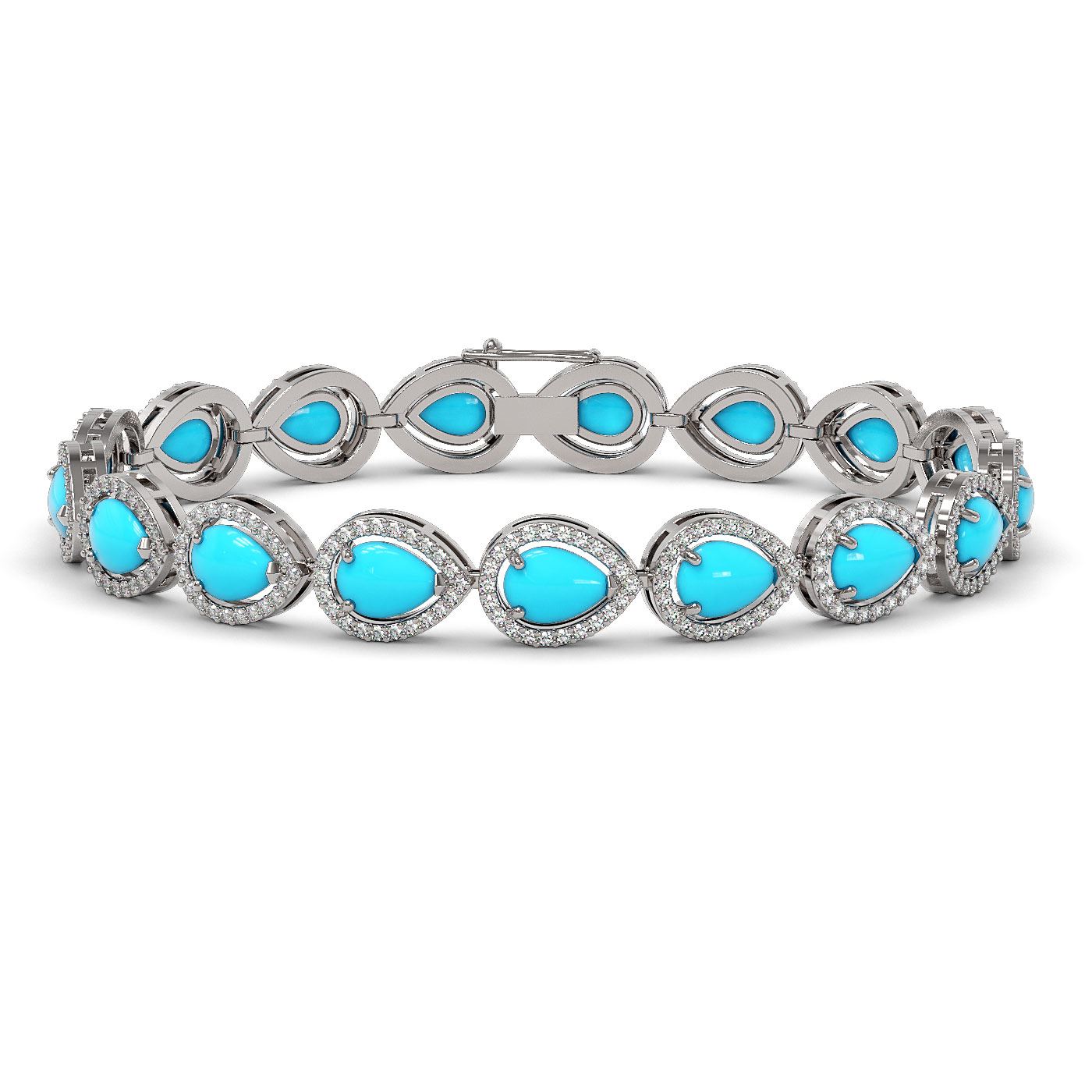 SKU: 46045 ---- 13.19 ctw Turquoise & Diamond Micro Pave Halo Bracelet 10k White Gold
