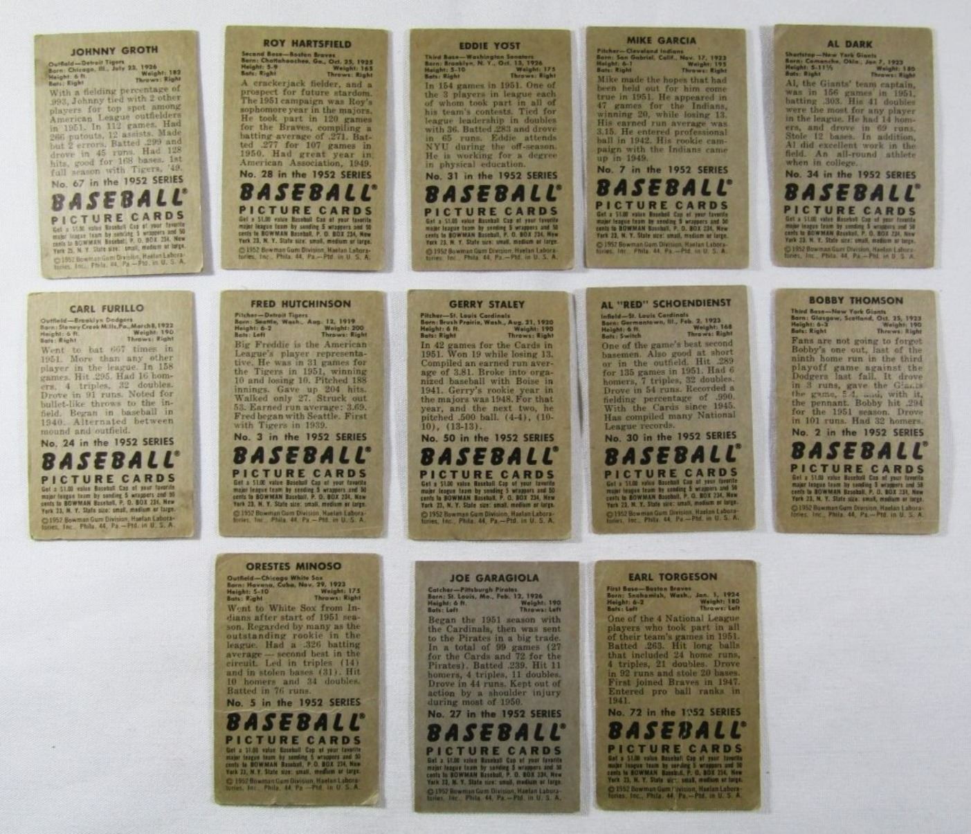 #27 GARAGIOLA EX/EM, #30 SCHOENDIENST, #50, #3, #24, #34, #7, #31, #28, #67 NICE EX-VGEX; #2, #5, #72 VG CREASED