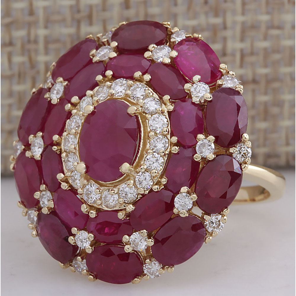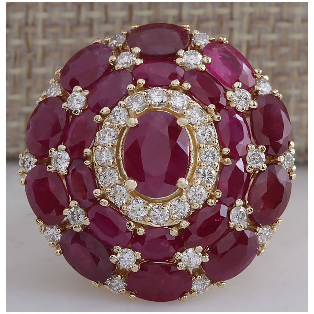 13.23 CTW Natural Red Ruby And Diamond Ring 18K Solid Yellow Gold
