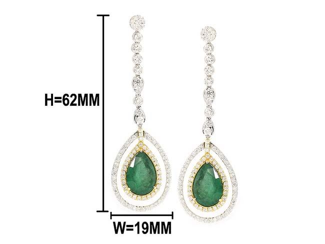 18k Gold Emerald AND DIAMOND DROP PEAR EARRING/Diamond Count 1:300/Diamond 1 TCW:3.51/Diamond Color & Clarity:G-H/SI1-SI3/Diamond Count 2:/Diamond 2 TCW:/Diamond Count 3:/Diamond 3 TCW:/Diamond Color & Clarity:/Gemstone Count 1: 2/Gemstone 1 TCW:9.75/Gemstone Type:Teardrop / Emerald/Gemstone Count 2: /Gemstone 2 TCW:/Gemstone Type:/Gemstone Count 3: /Gemstone 3 TCW:/Gemstone Type:/Metal 1:18k GoldTWO TONE GOLD/Gram Weight:12.69/Weight/gram:/Gross Weight:/Item-Size (HxW mm):62x19