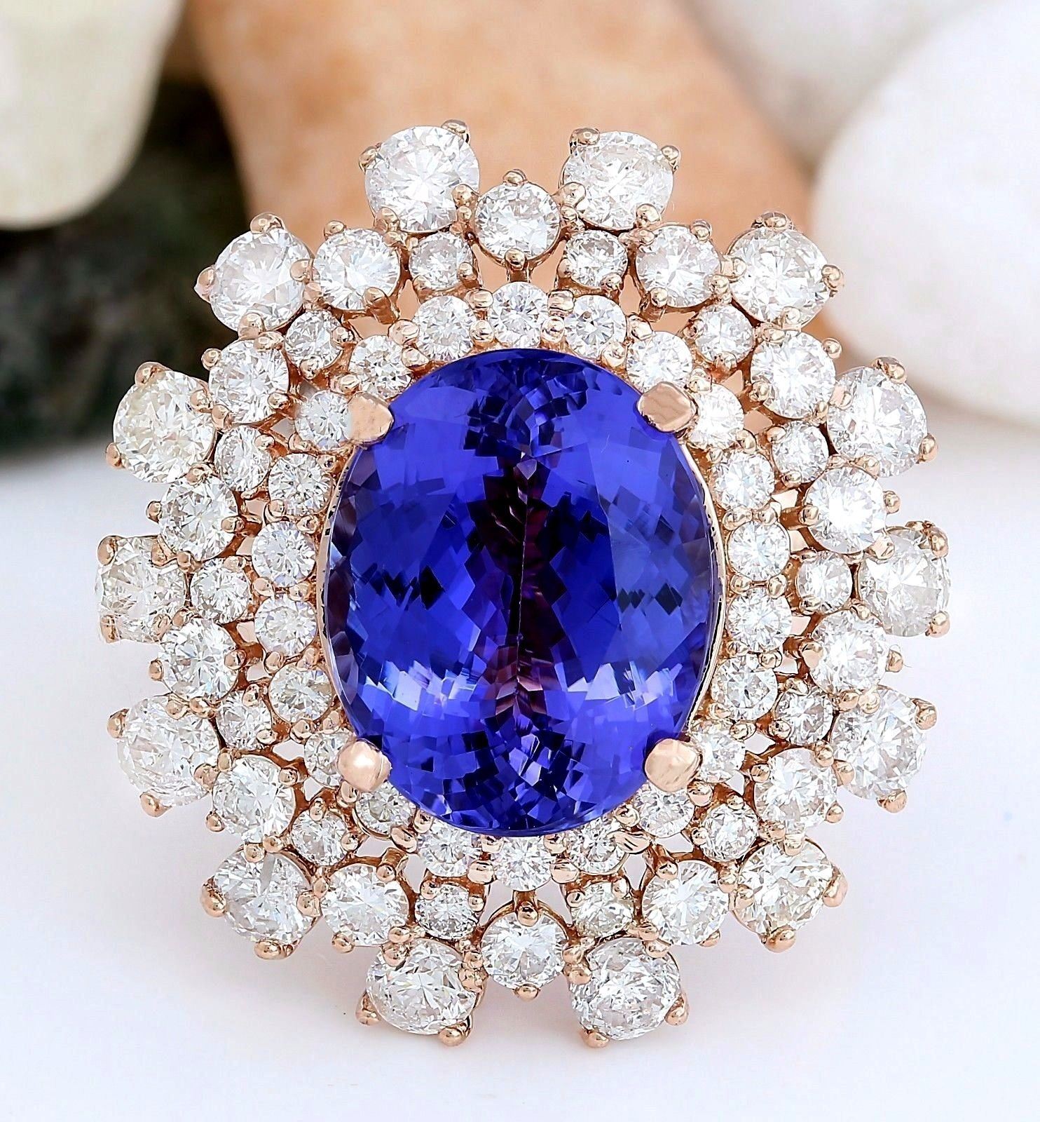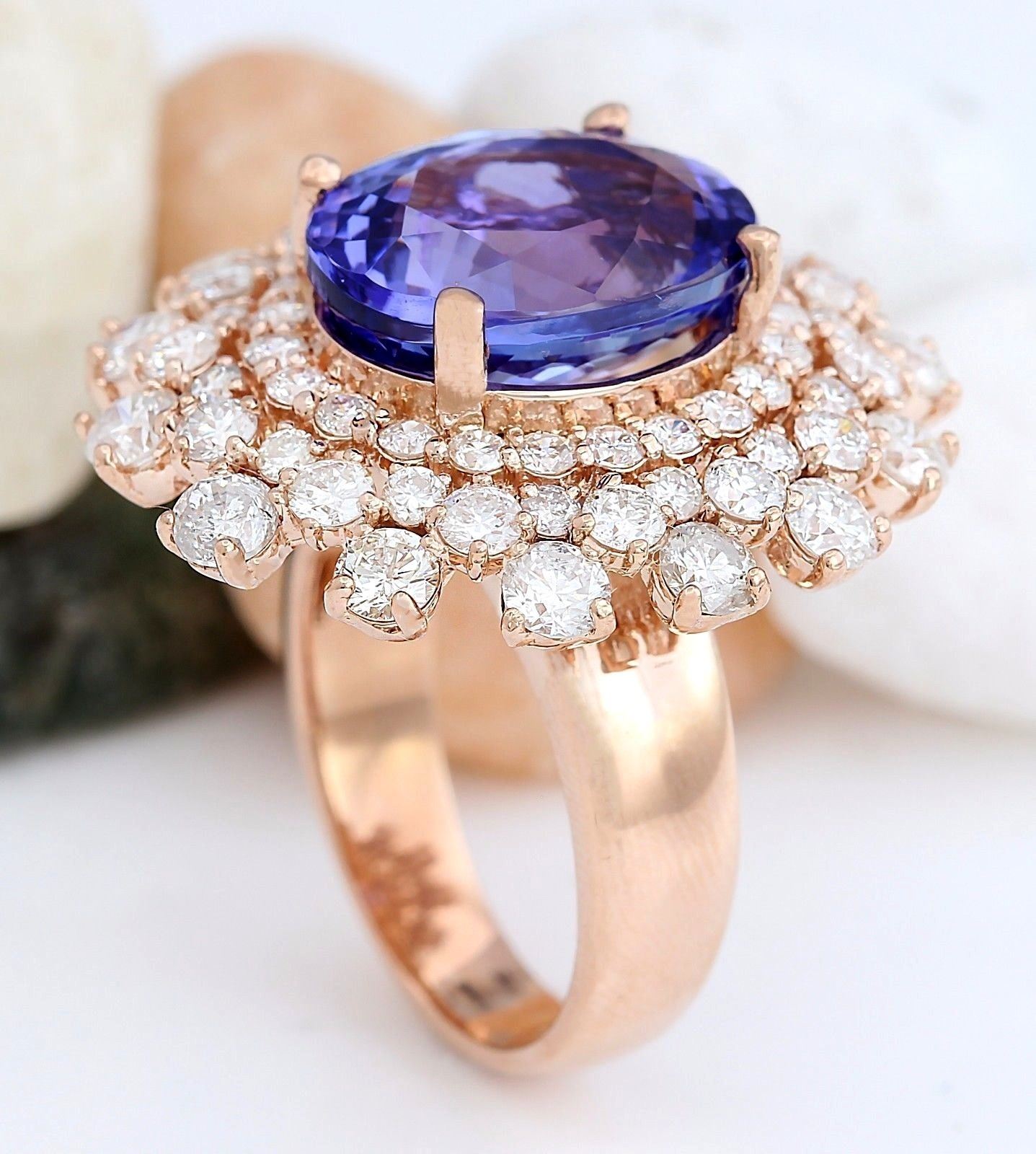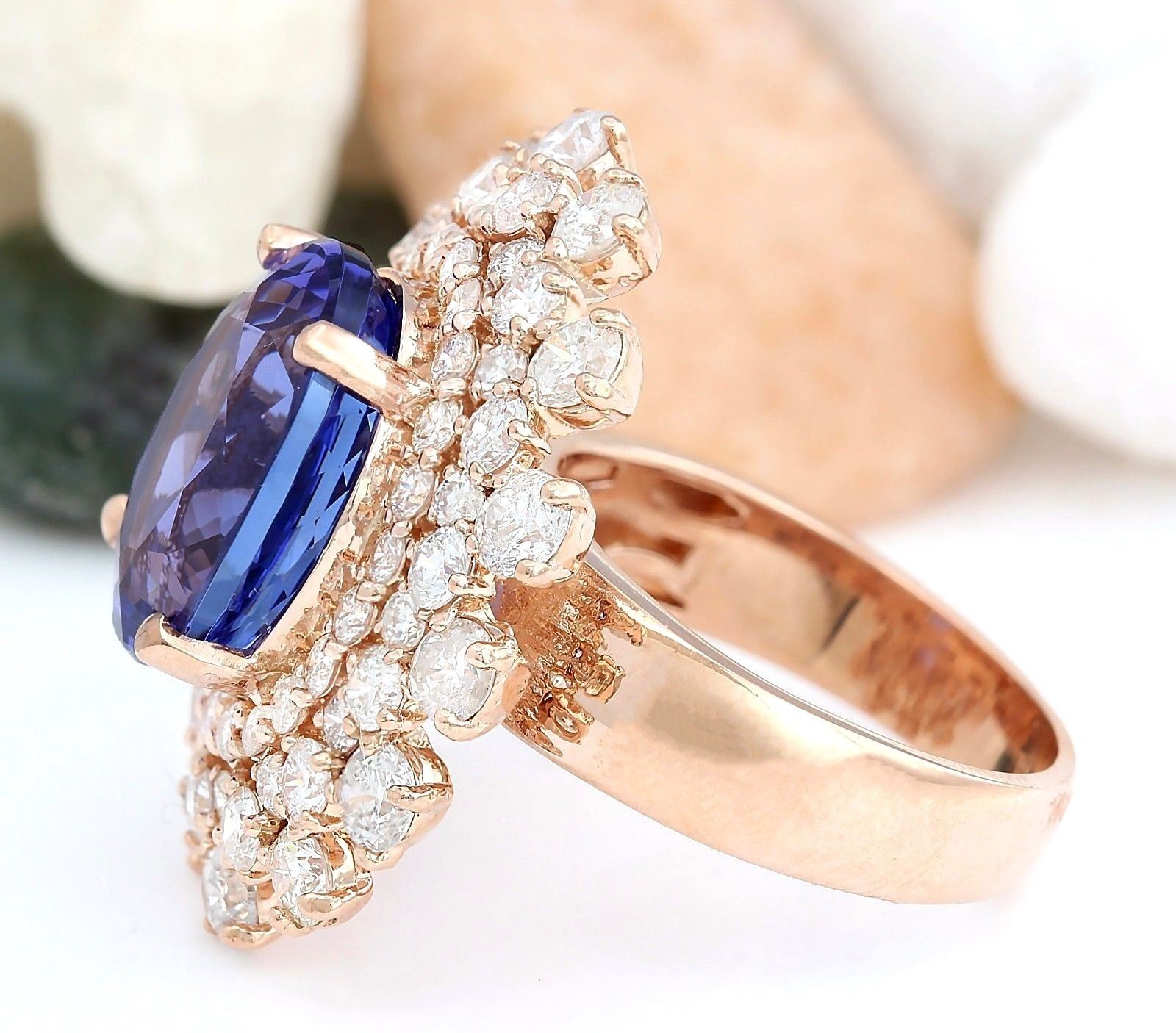 13.27 Carat Natural Tanzanite 18K Solid Rose Gold Diamond Ring