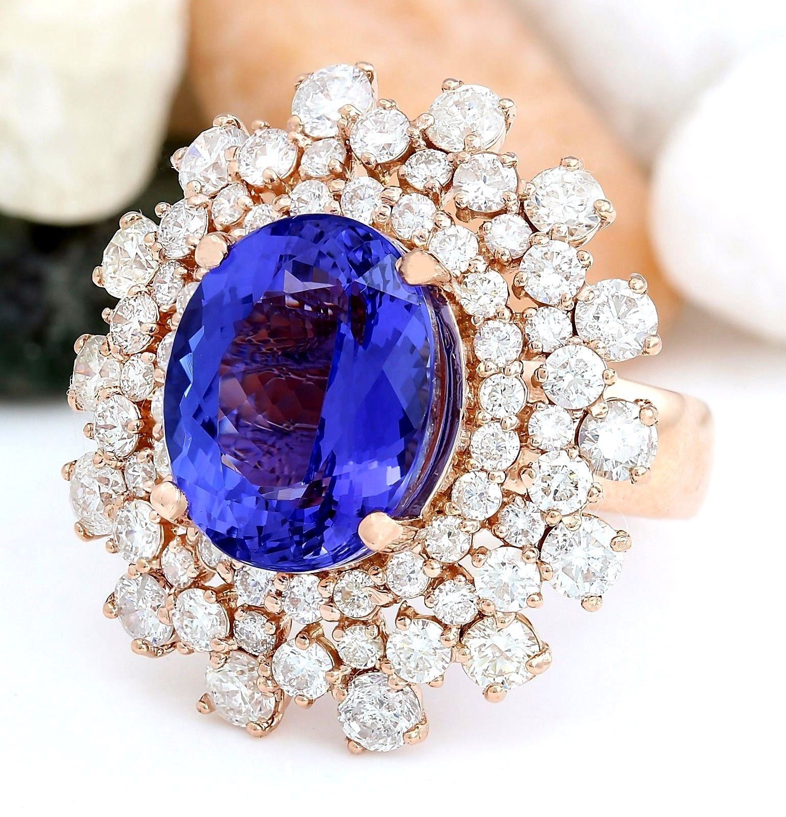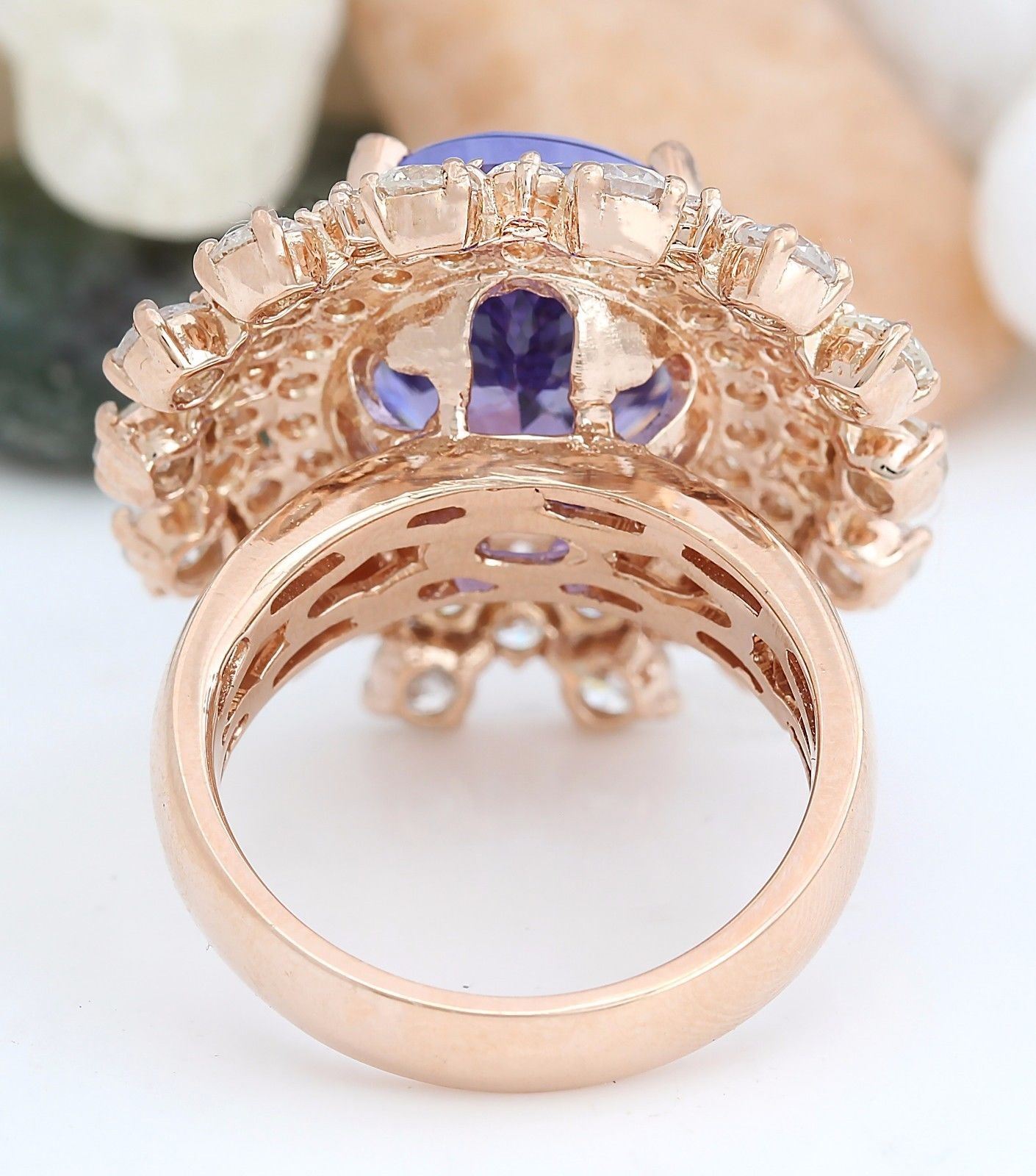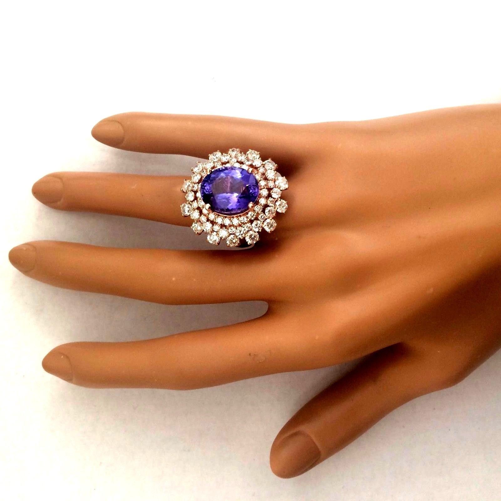 13.27 Carat Natural Tanzanite 18K Solid Rose Gold Diamond Ring
