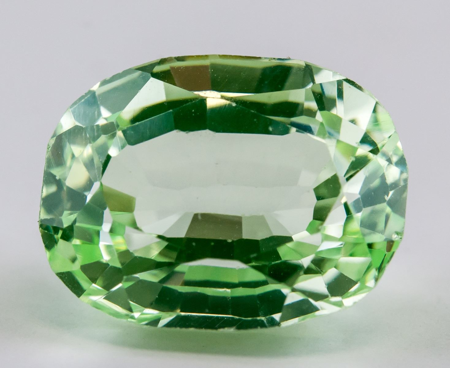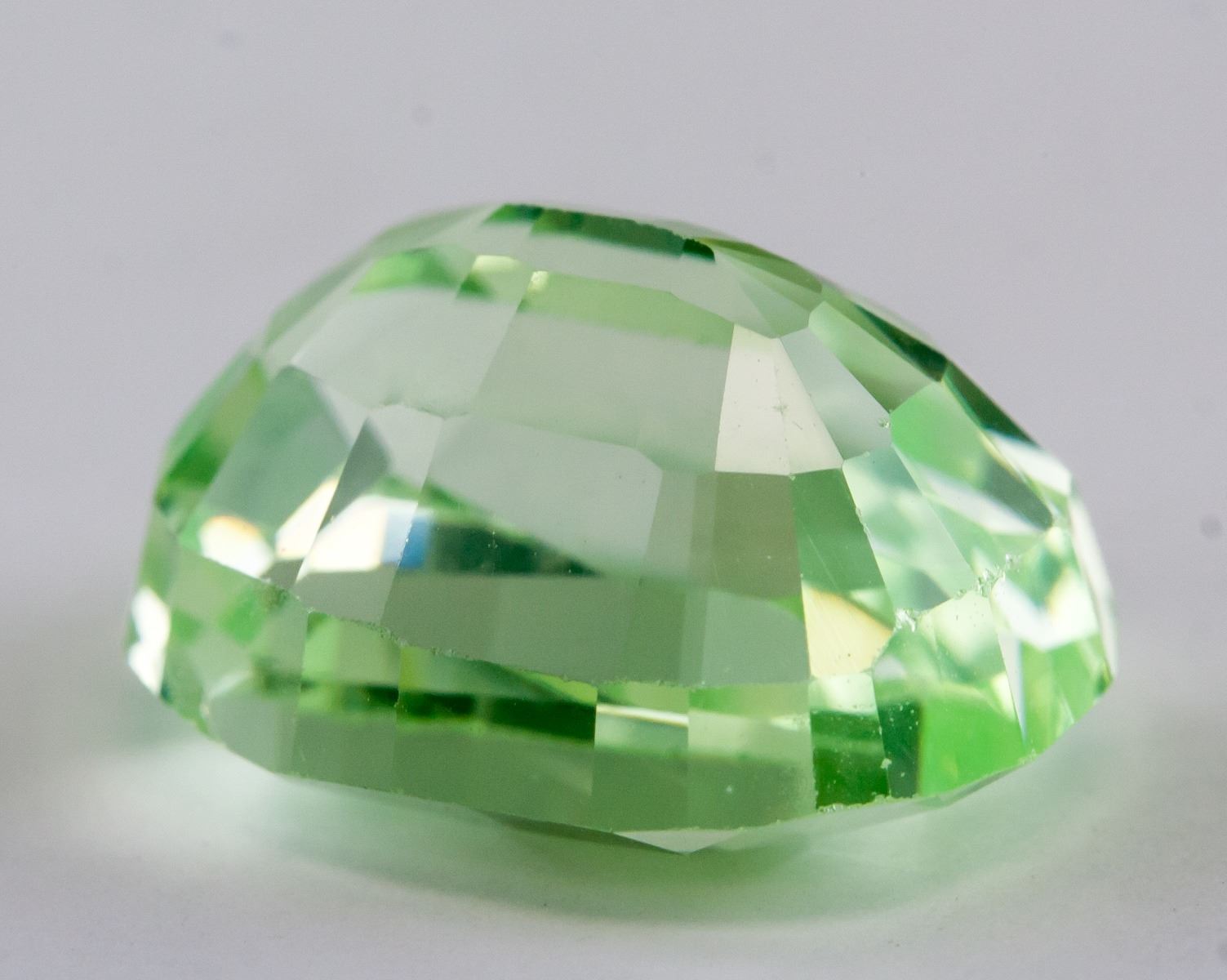 One 13.20 Ct oval cut green natural peridot. 14.52 x 11.57 x 8.46 mm. Origin: Brazil. Accompanied with AGSL certificate.
