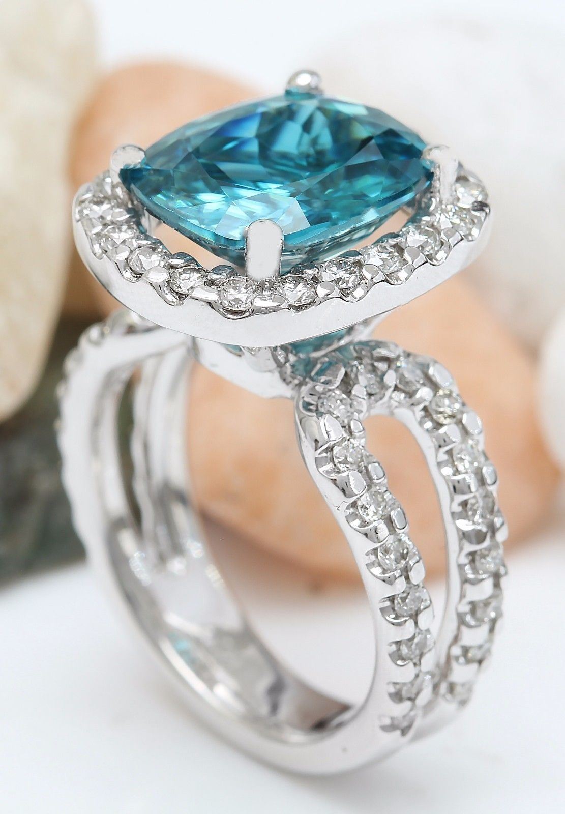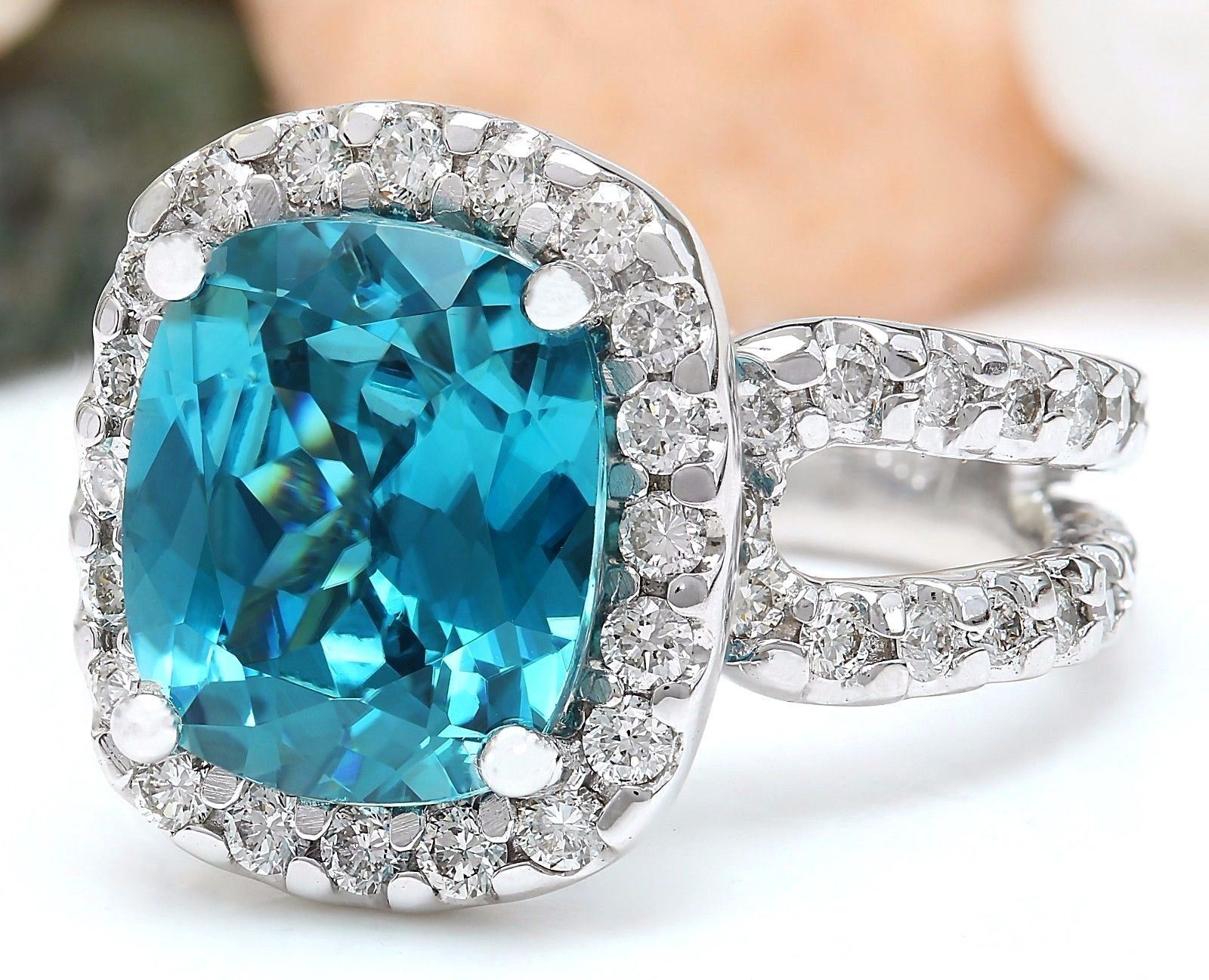9.42 Carat Natural Zircon 14K Solid White Gold Diamond Ring