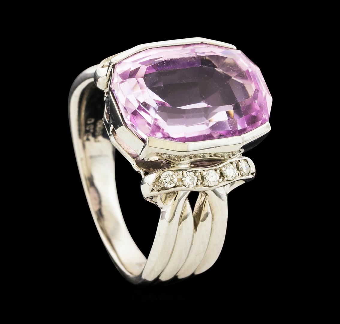 One ring featuring: Platinum containing Kunzite with a total weight of 13.30ct and Diamonds with a total weight of 0.19ct. Total Weight of Ring: 18.6 grams.