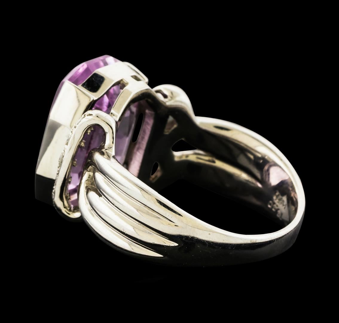 One ring featuring: Platinum containing Kunzite with a total weight of 13.30ct and Diamonds with a total weight of 0.19ct. Total Weight of Ring: 18.6 grams.