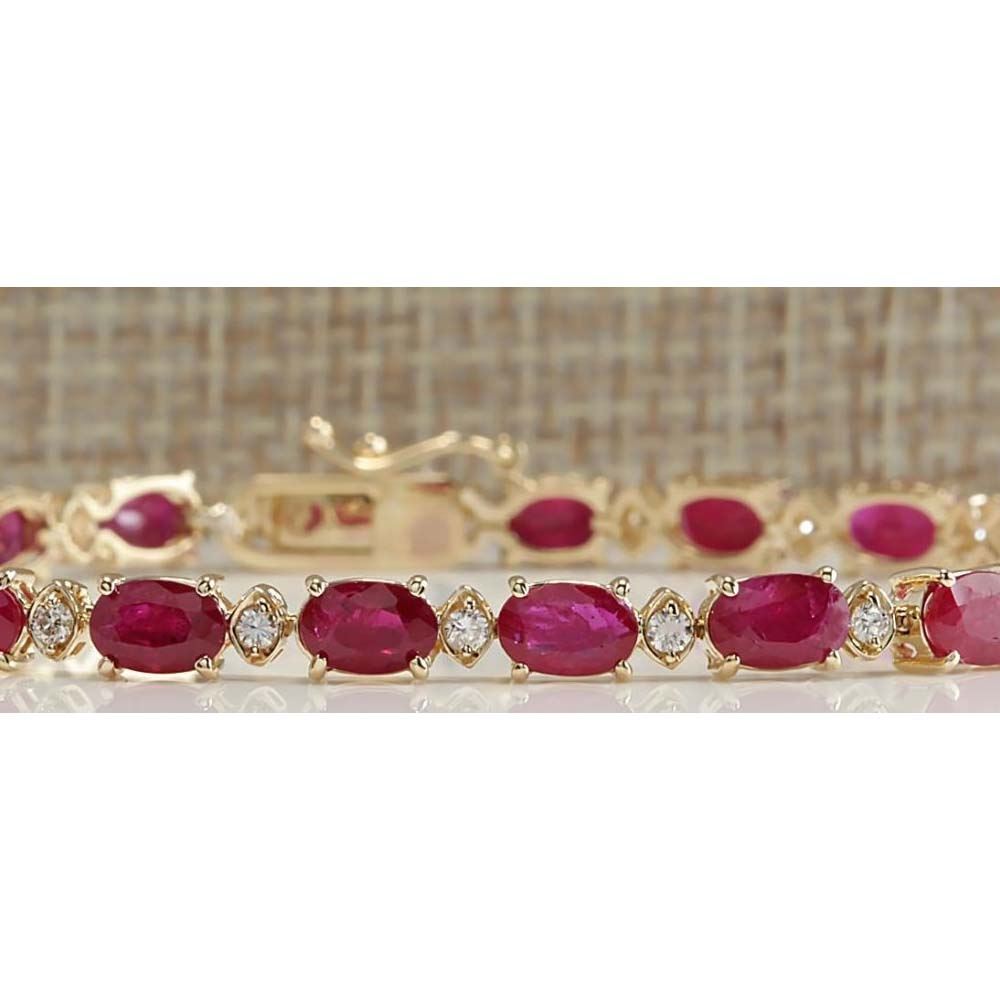 13.35CTW Natural Red Ruby And Diamond Bracelet In 18K Yellow Gold