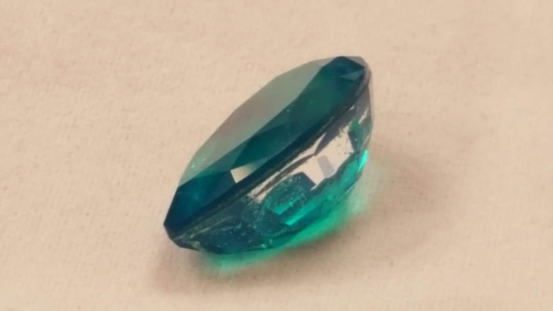 13.35ct russian emerald gemstone. Beautiful bright emerald green hue. This lab created emerald displays strong vivid saturation and exquisite clarity and brilliant color. Near flawless and ready to mount.
