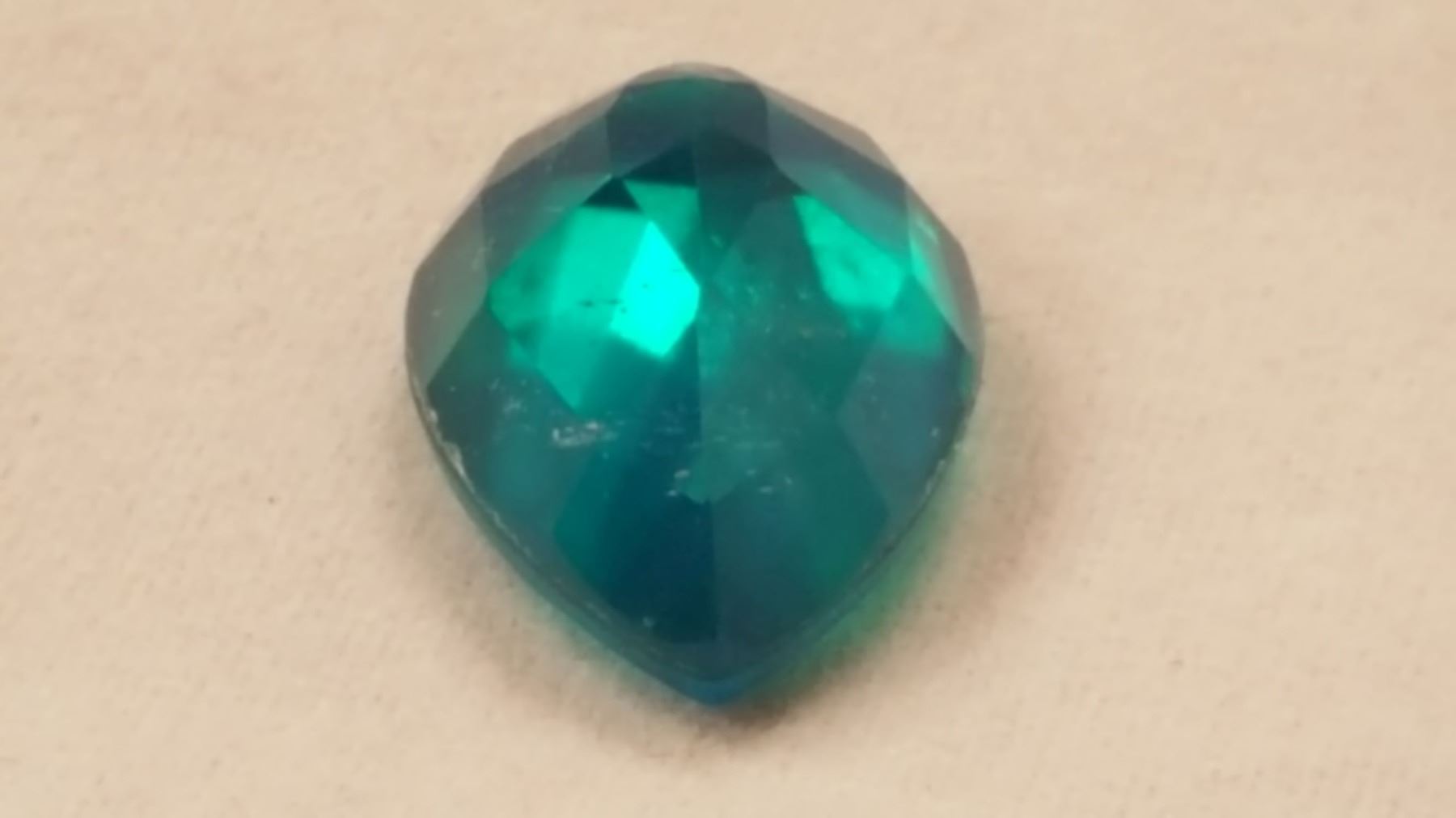 13.35ct russian emerald gemstone. Beautiful bright emerald green hue. This lab created emerald displays strong vivid saturation and exquisite clarity and brilliant color. Near flawless and ready to mount.