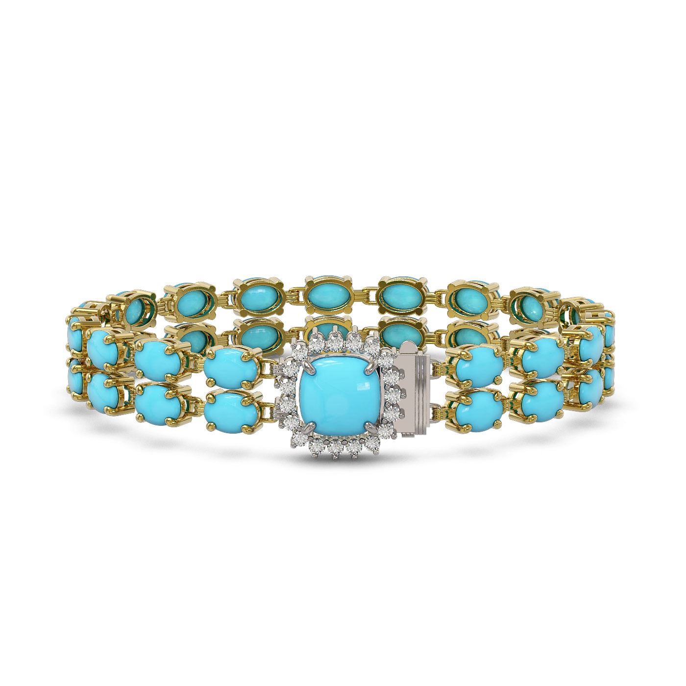 SKU: 45646 ---- 13.37 ctw Turquoise & Diamond Bracelet 14K Yellow Gold