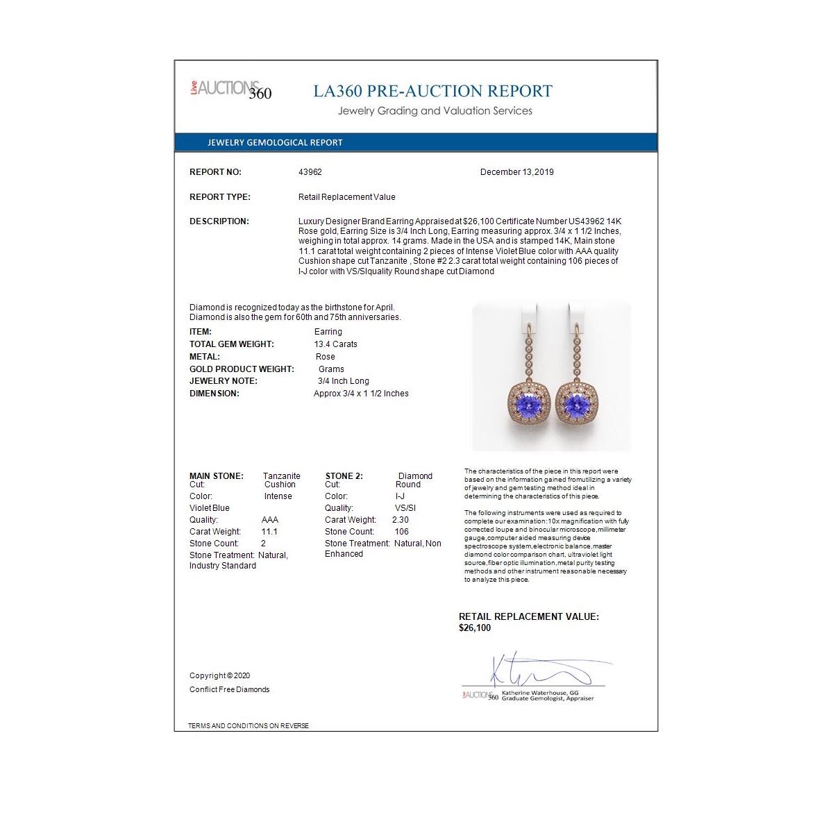 REF-527A3N - SKU: 43962 ---- 13.4 ctw Tanzanite & Diamond Victorian Earrings 14K Rose Gold