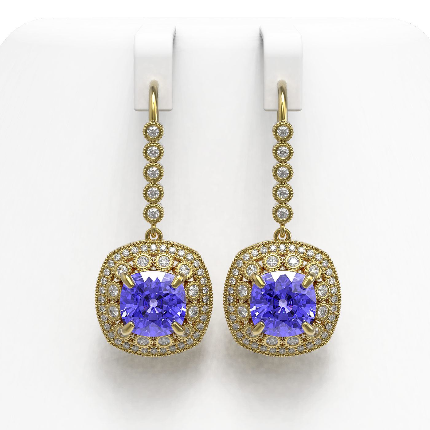 13.4 ctw Tanzanite & Diamond Victorian Earrings 14K Yellow Gold
