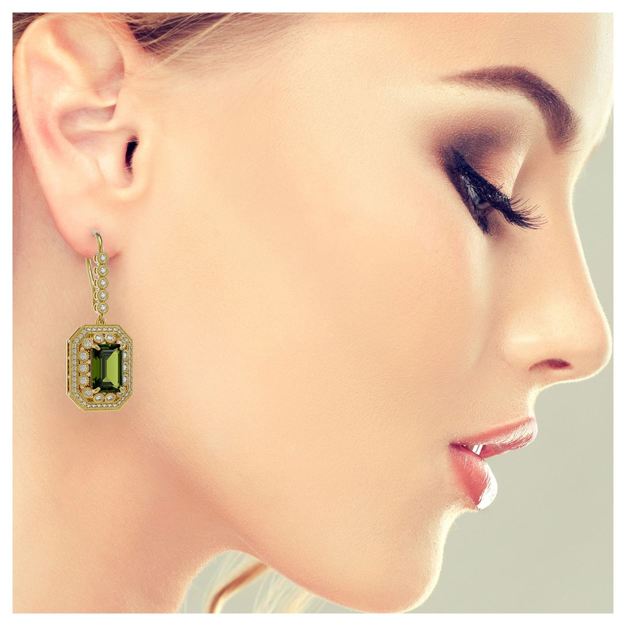 13.4 ctw Tourmaline & Diamond Earrings 14K Yellow Gold