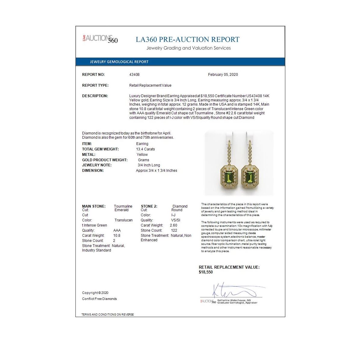 REF-375K3Y - SKU: 43408 ---- 13.4 ctw Tourmaline & Diamond Victorian Earrings 14K Yellow Gold