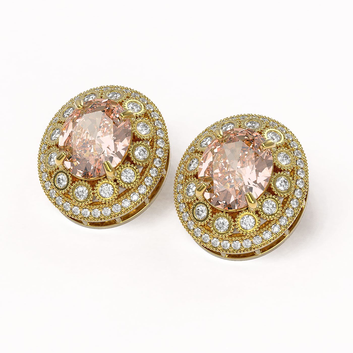 SKU: 43816 ---- 13.41 ctw Morganite & Diamond Victorian Earrings 14K Yellow Gold