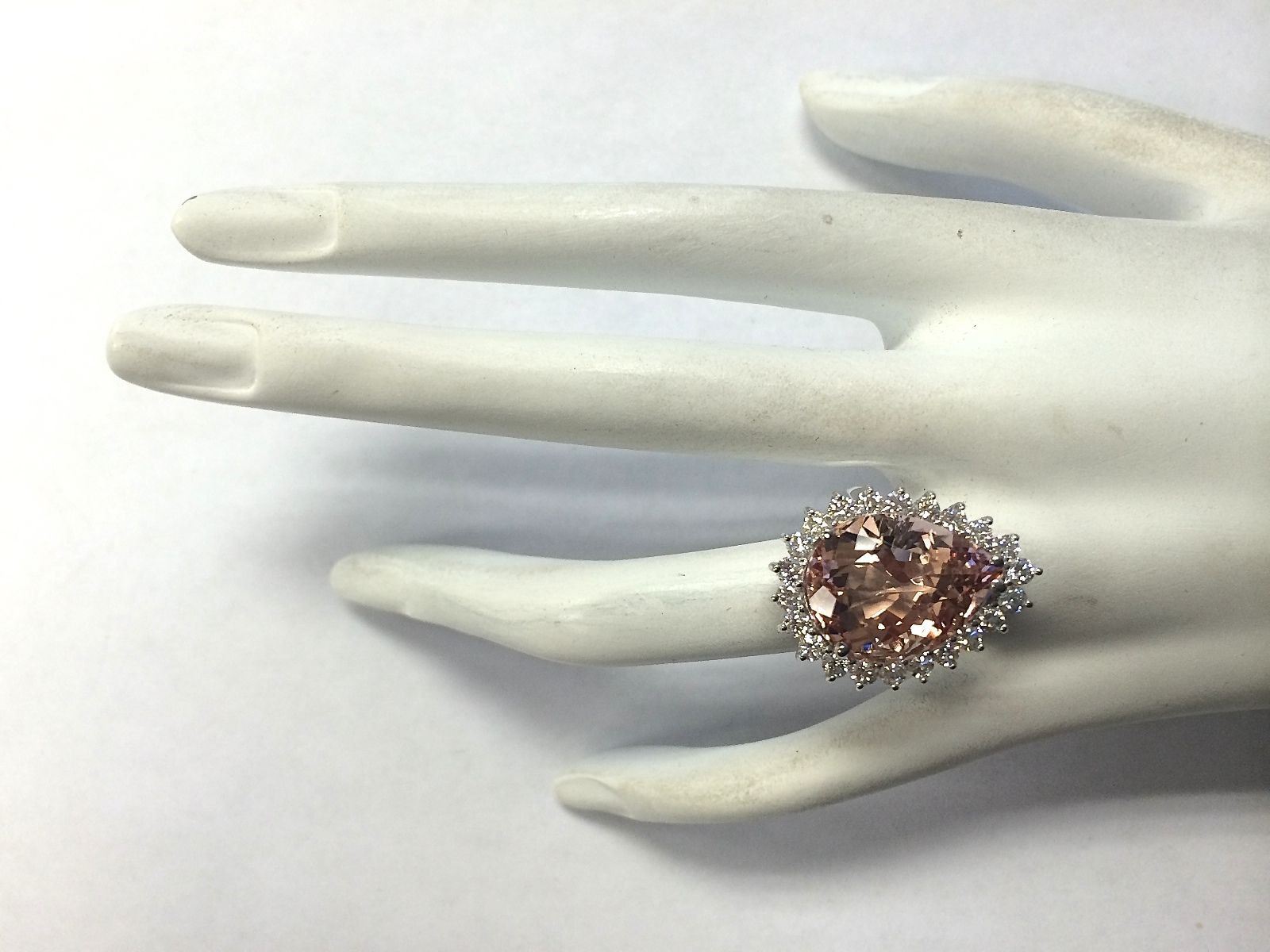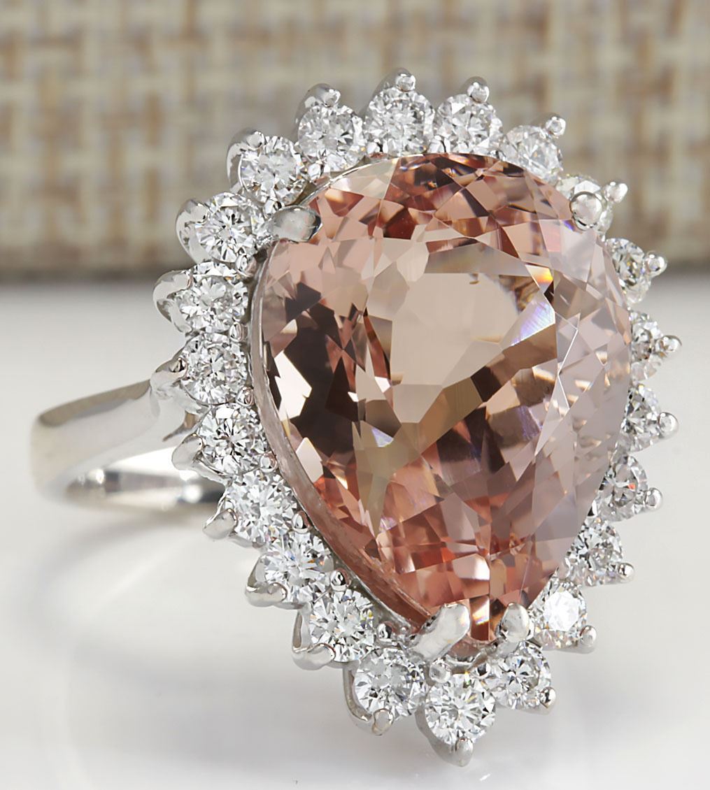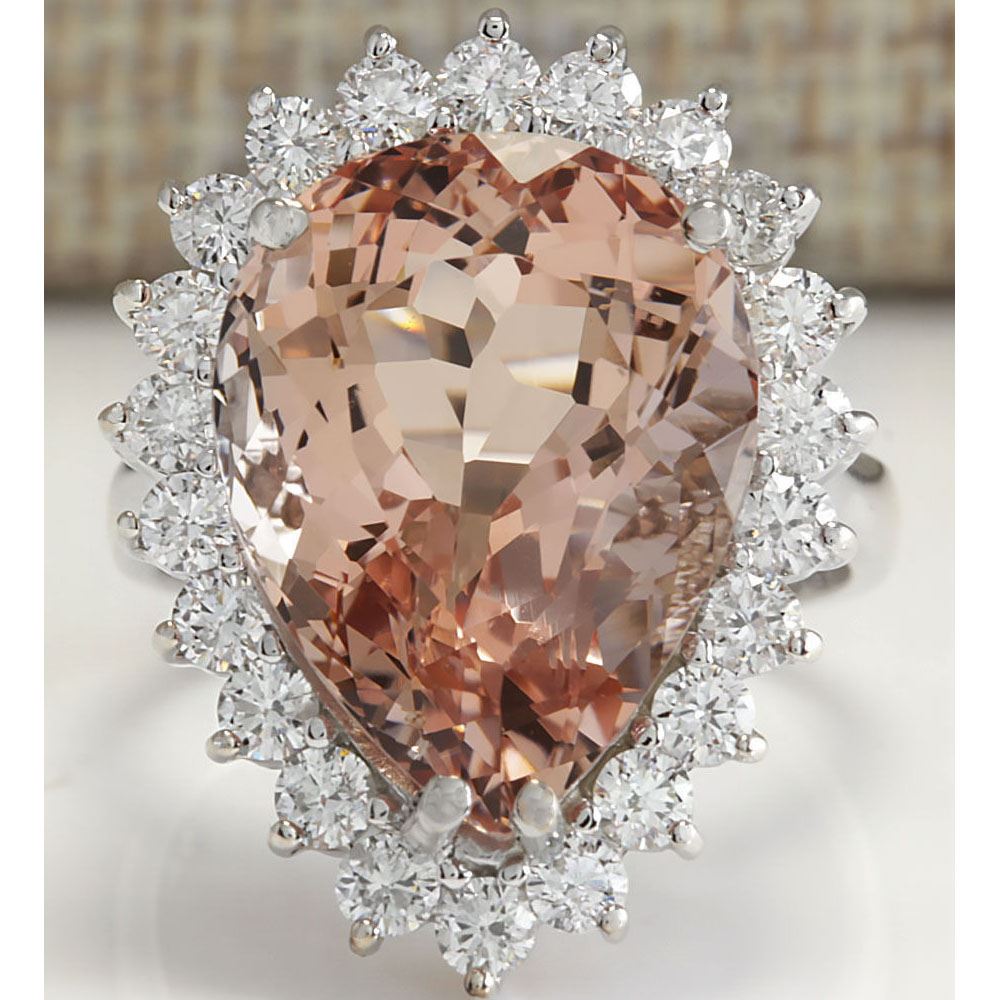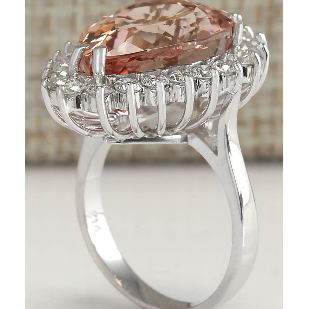 13.43 CTW Natural Peach Morganite And Diamond Ring In 18K Solid White Gold