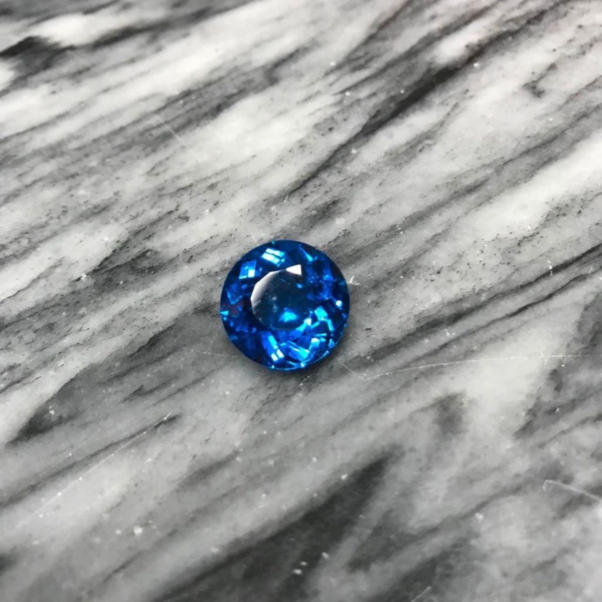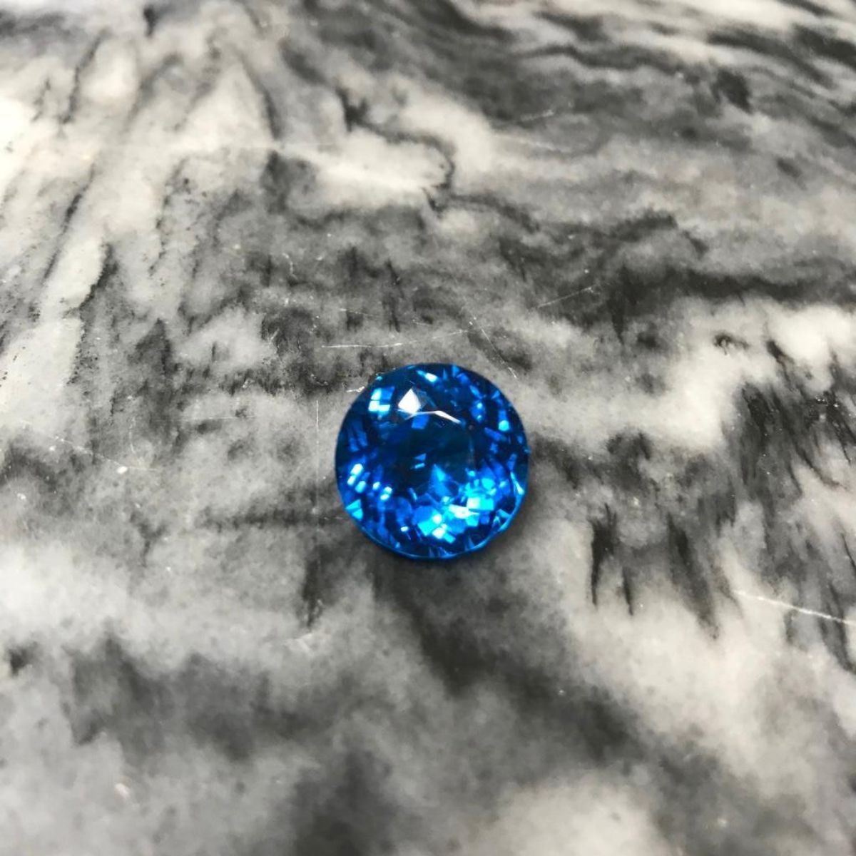 13.44ct Round faceted Brazilian Lab-Created London Blue Topaz gemstone. 14.5 x 14.5 x 8.6 mm. Ready to made into a fabulous pendant or enhancer. - 10341-050318-EB-17731