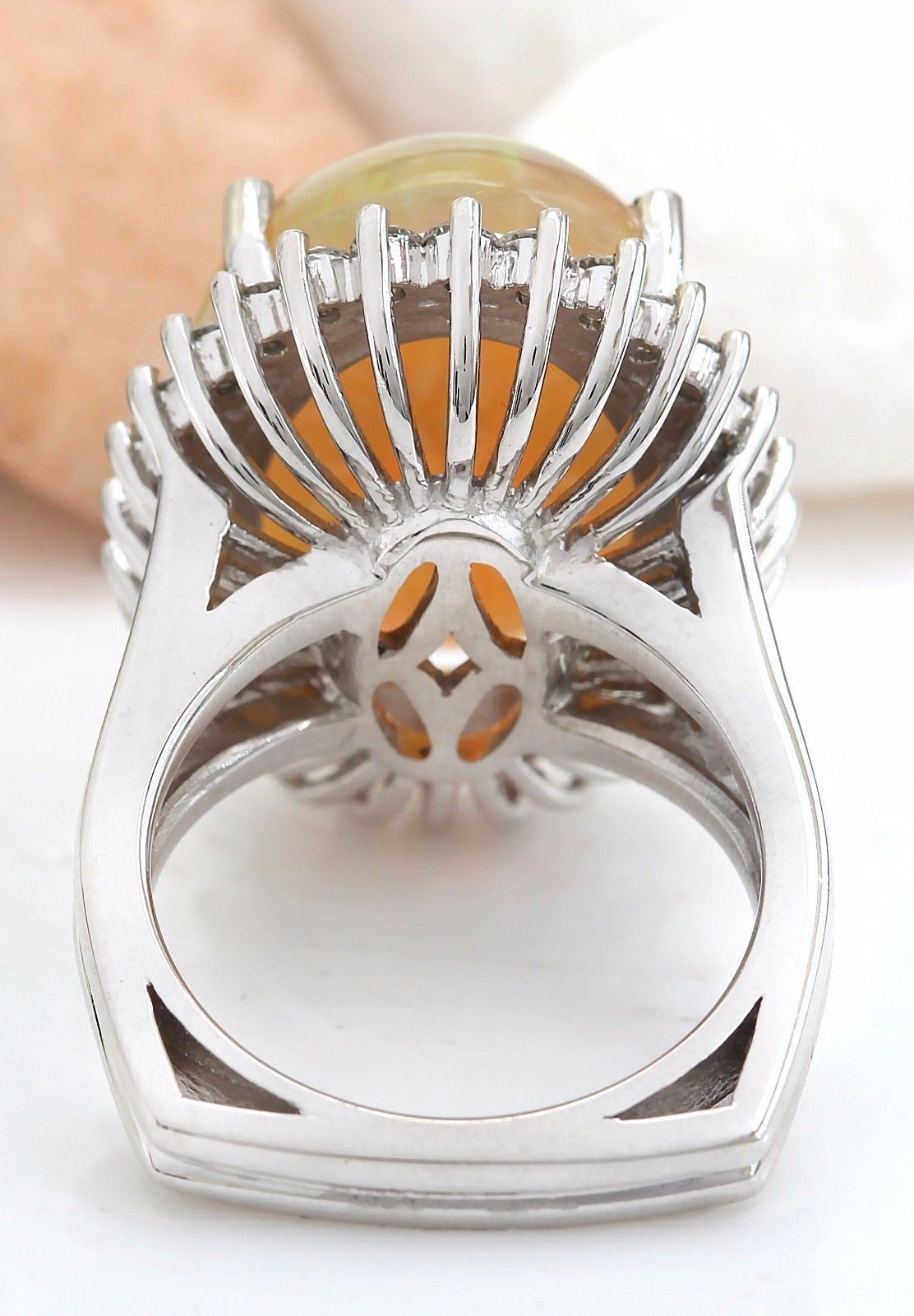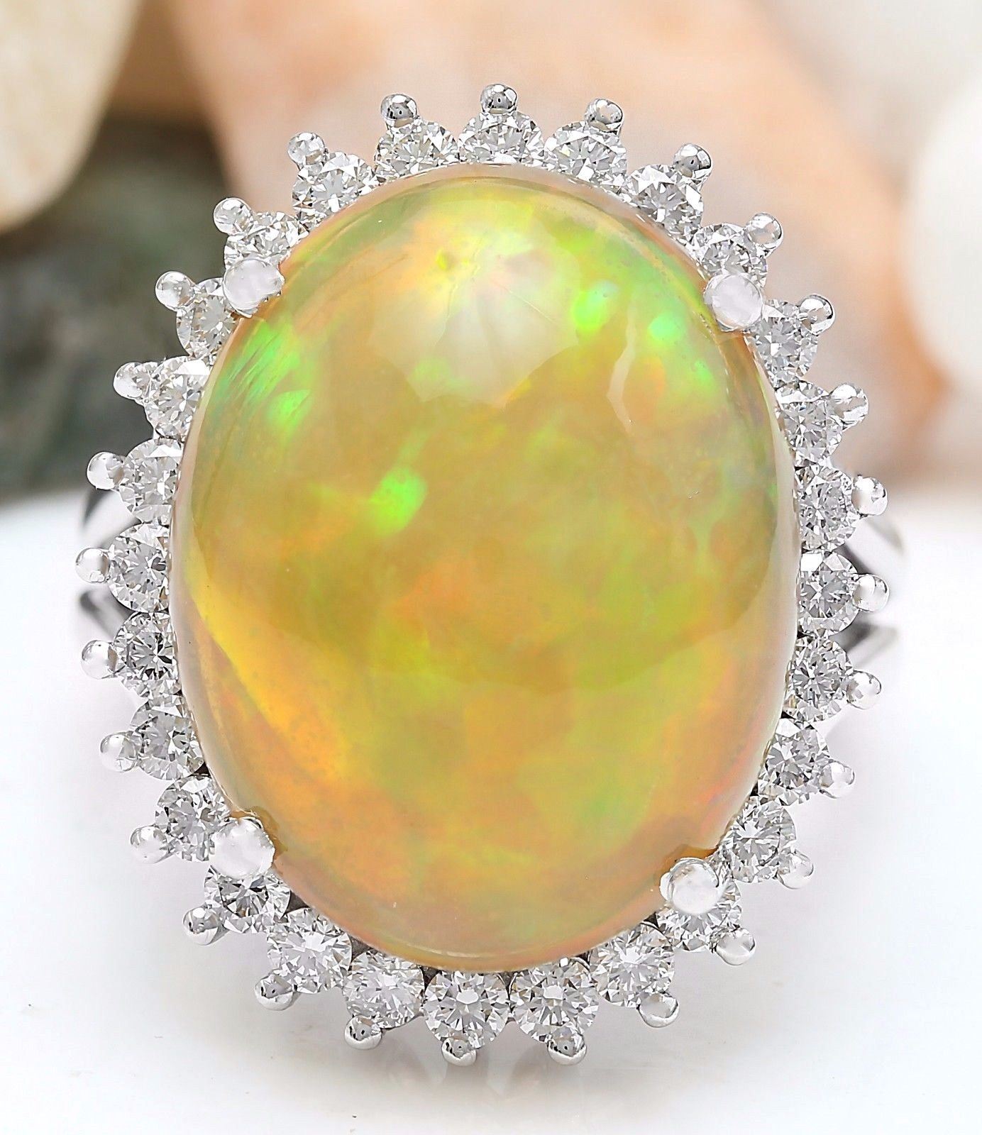 13.48 Carat Natural Opal 14K Solid White Gold Diamond Ring