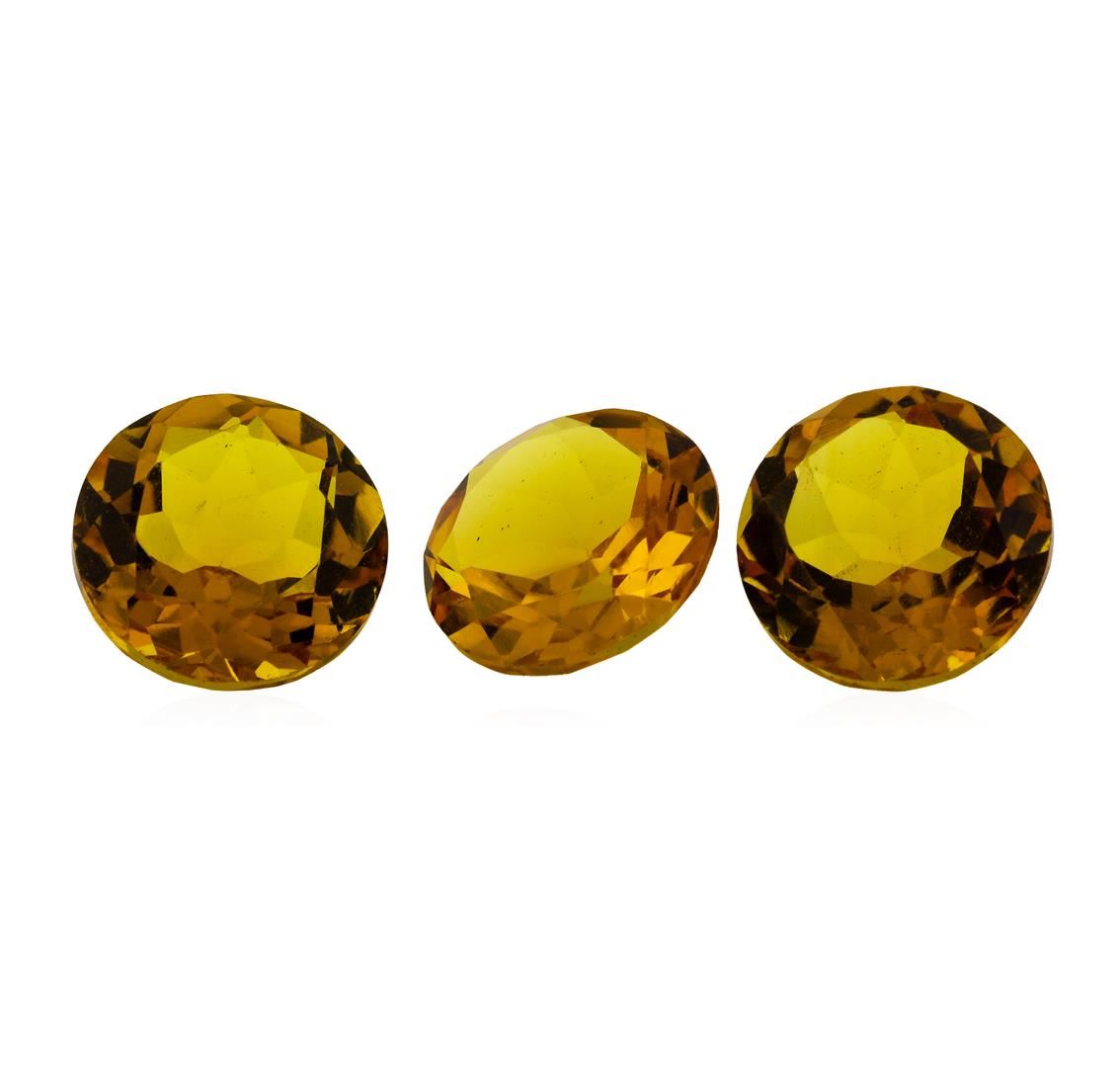 One natural round cut citrine quartz parcel of three with an exact weight of 13.48ctw., clarity is eye clean, yellowish orange, medium dark. Gemological Appraisals Services estimates the retail value at $539.2 GAS Appraised.