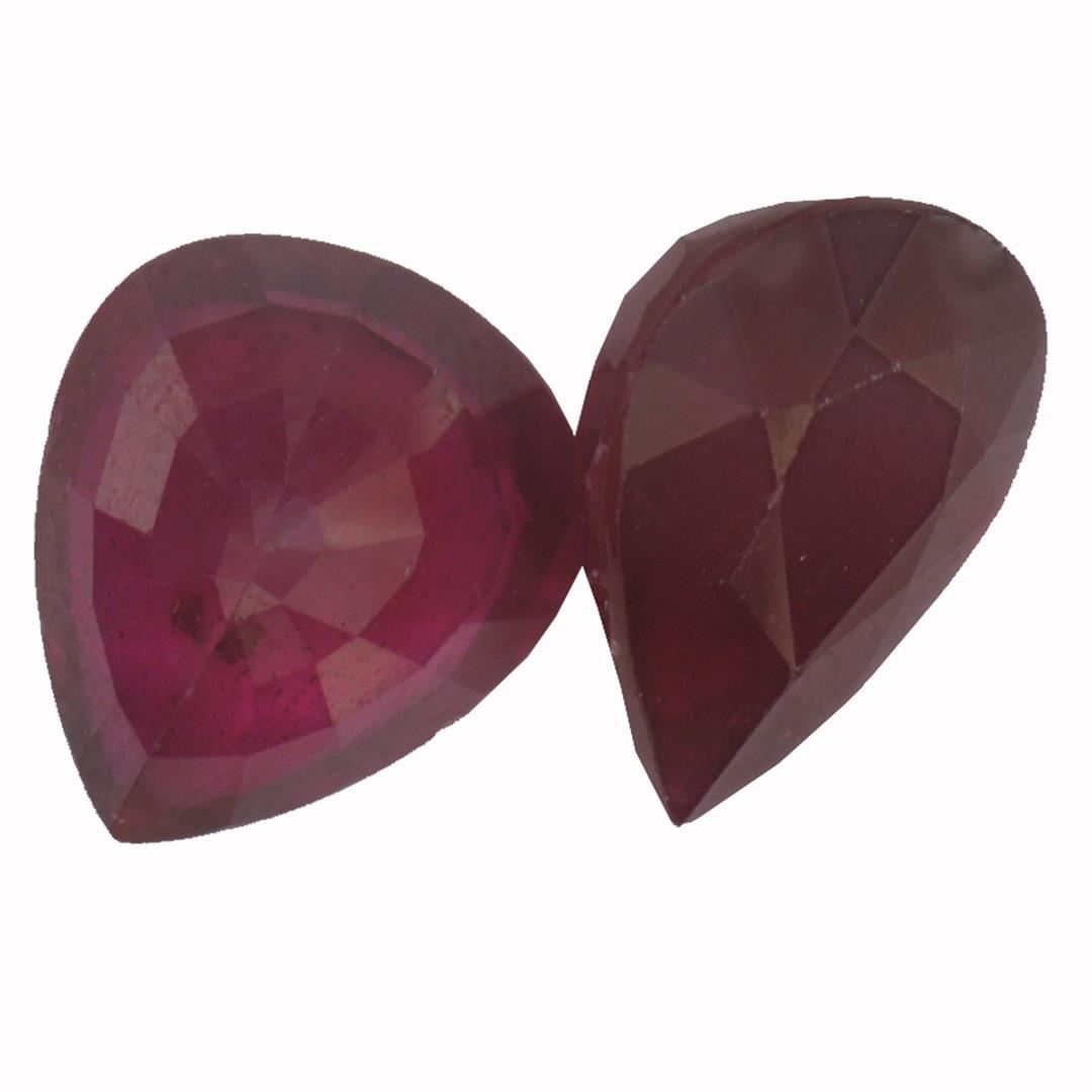 Two pear mixed cut natural rubies exact total weight 13.48ct., clarity is heavily included, type II, dark, very slightly brownish, slightly purplish red color, (GIA slpR 7/3), cut is good. Westfield Appraised at $1,715.00.