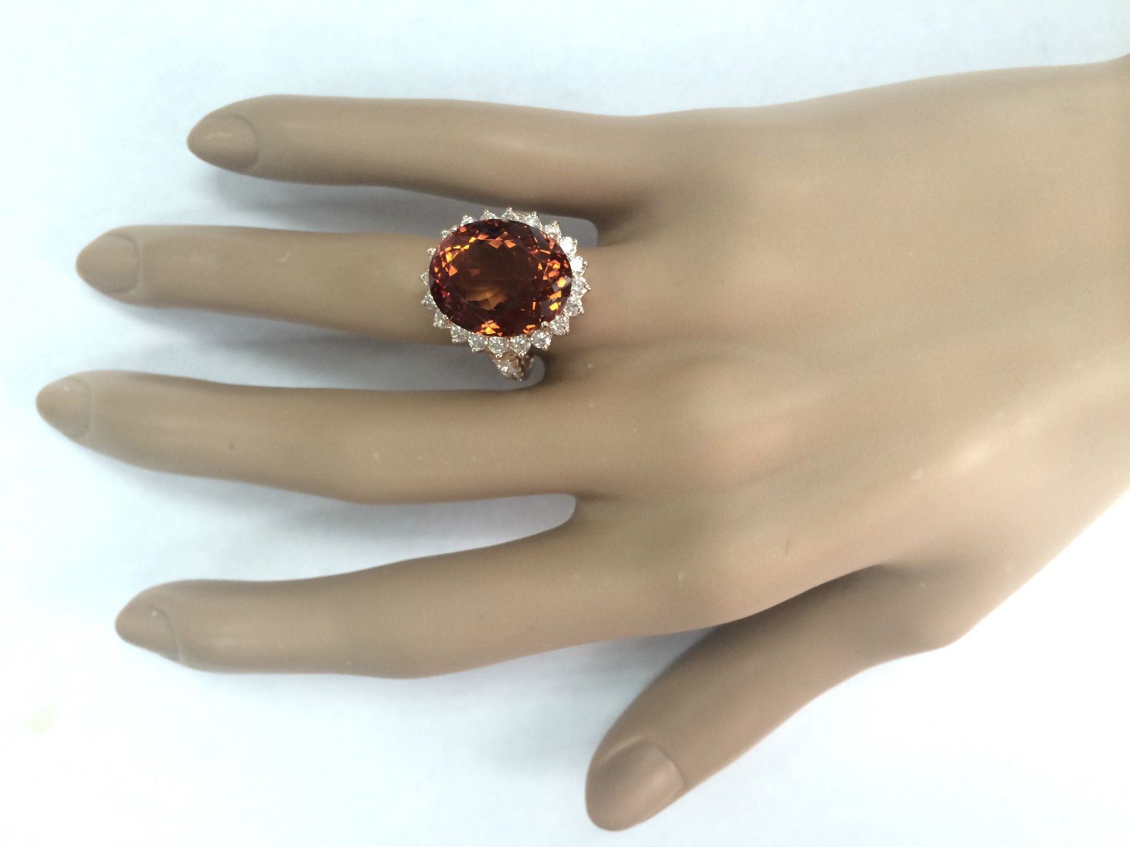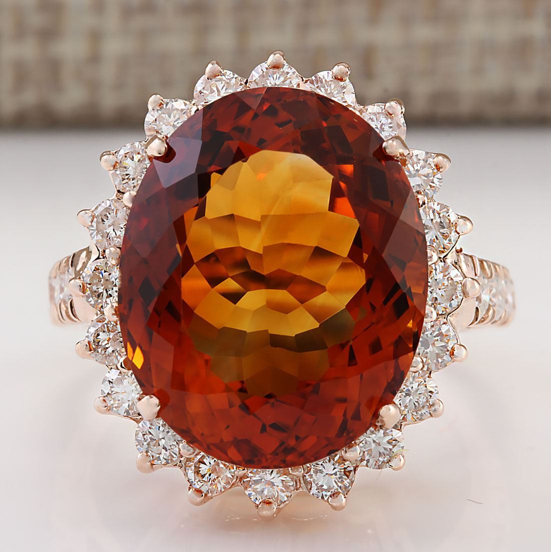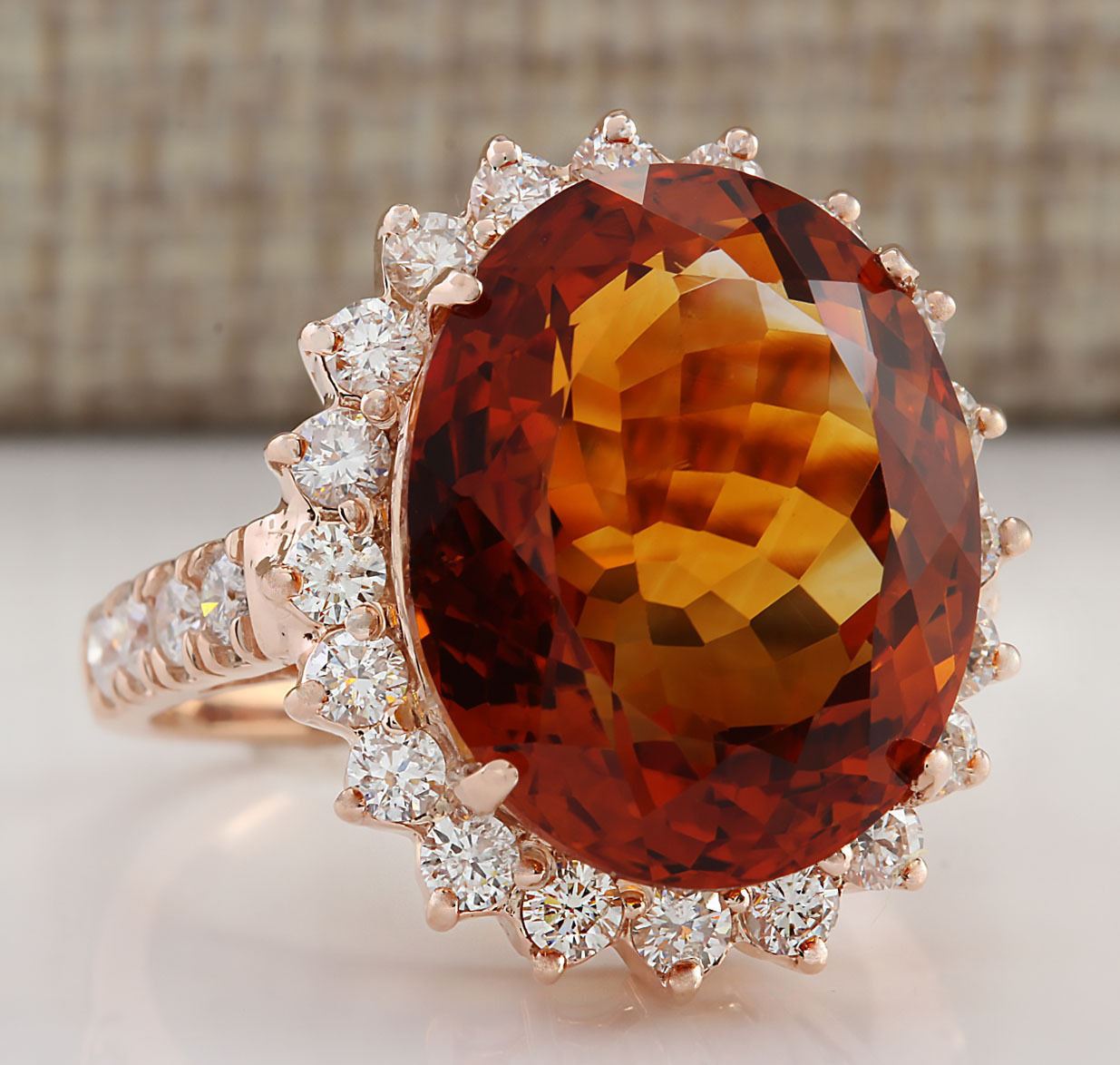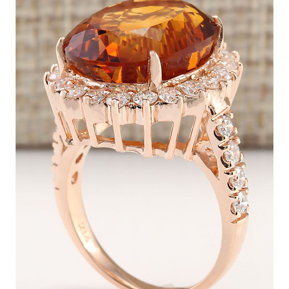 13.49 CTW Natural Madeira Citrine And Diamond Ring 18K Solid Rose Gold
