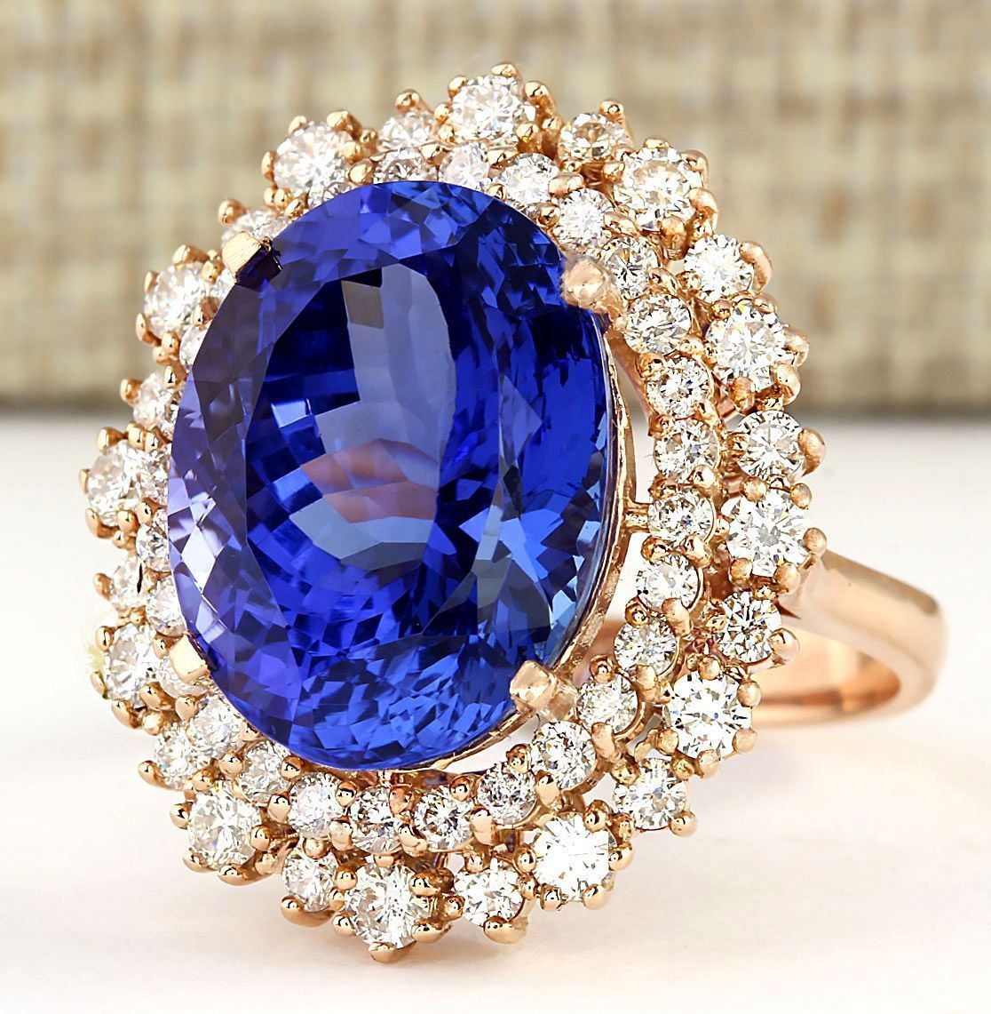 13.49 CTW Natural Tanzanite And Diamond Ring In 18K Rose Gold