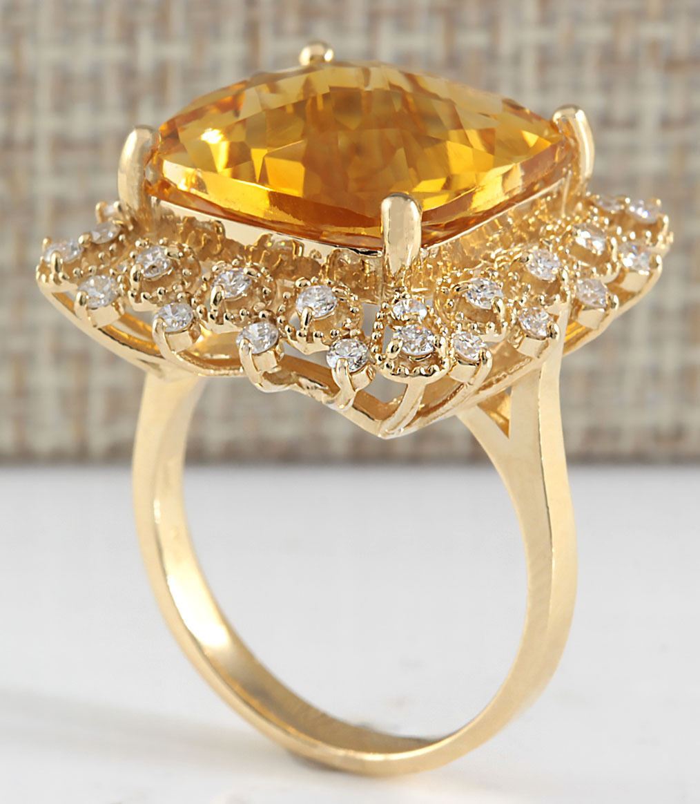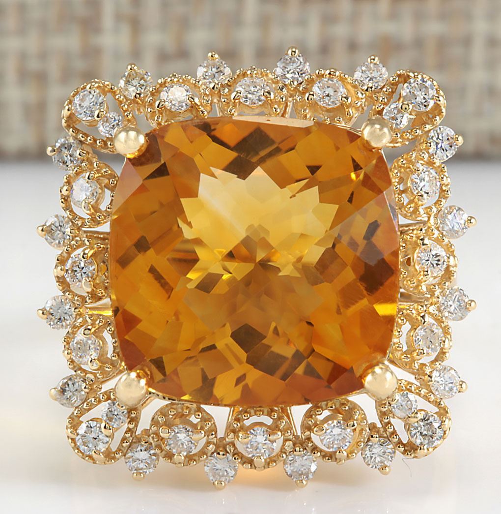 13.50 CTW Natural Citrine And Diamond Ring In 18K Yellow Gold