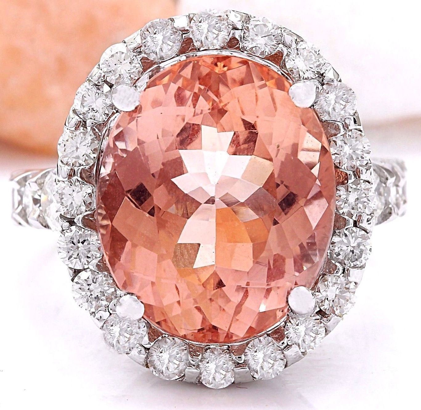 13.50 Carat Natural Morganite 18K Solid White Gold Diamond Ring