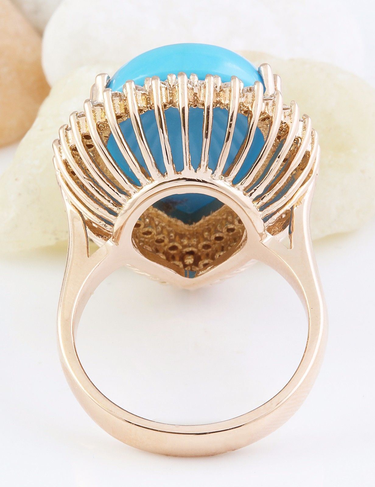13.50 Carat Natural Turquoise 14K Solid Rose Gold Diamond Ring