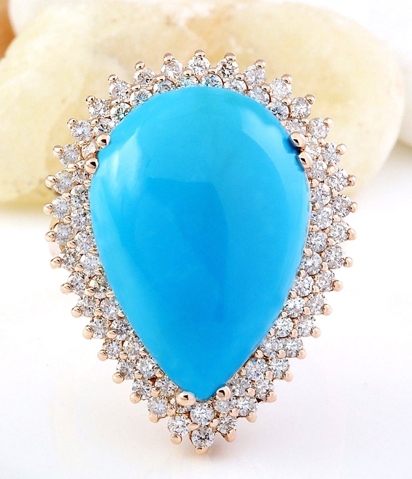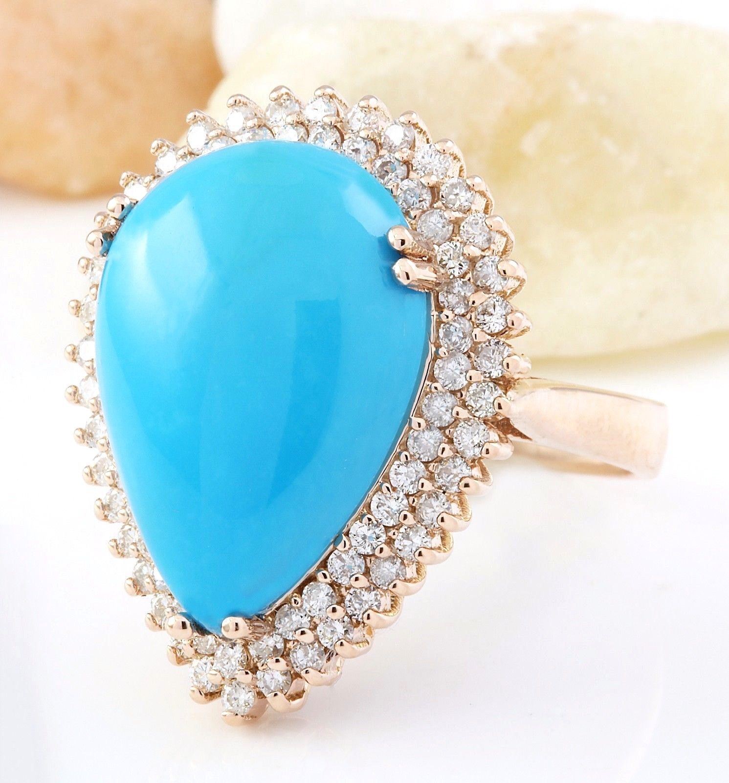 13.50 Carat Natural Turquoise 18K Solid Rose Gold Diamond Ring
