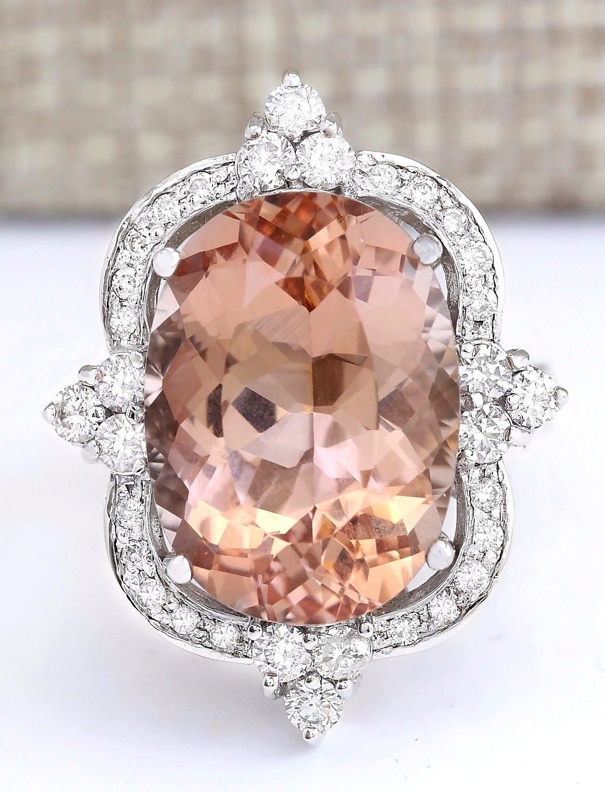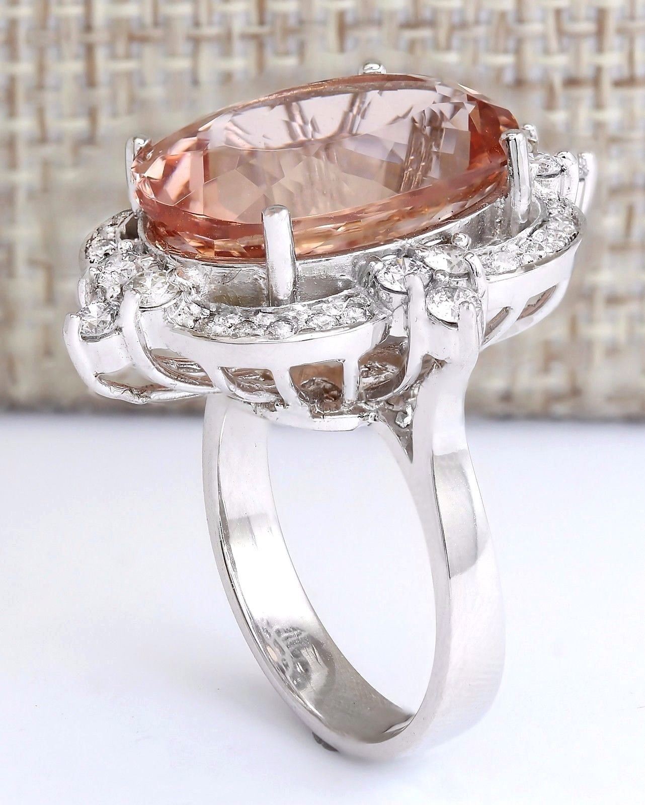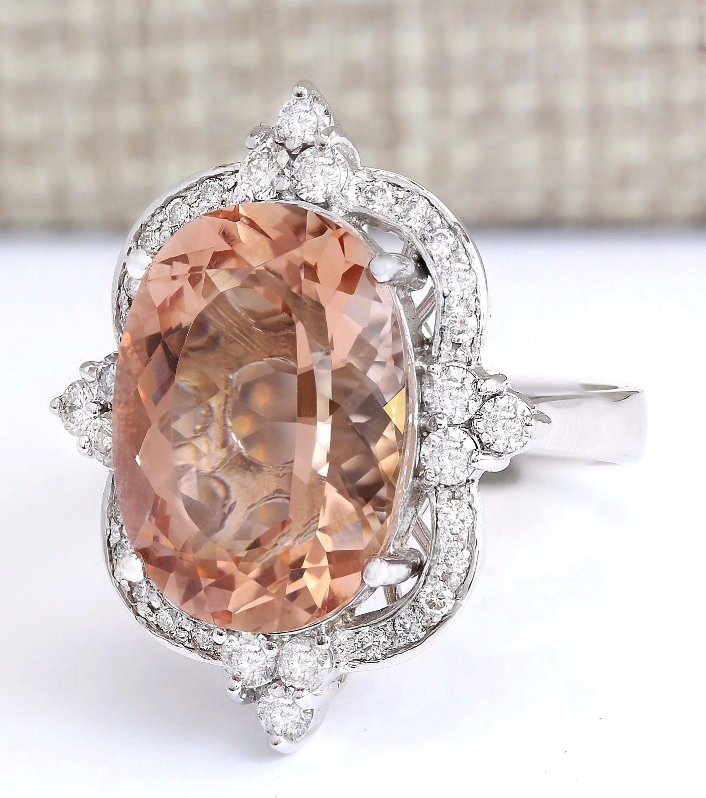 13.51 CTW Natural Morganite And Diamond Ring In 18K White Gold