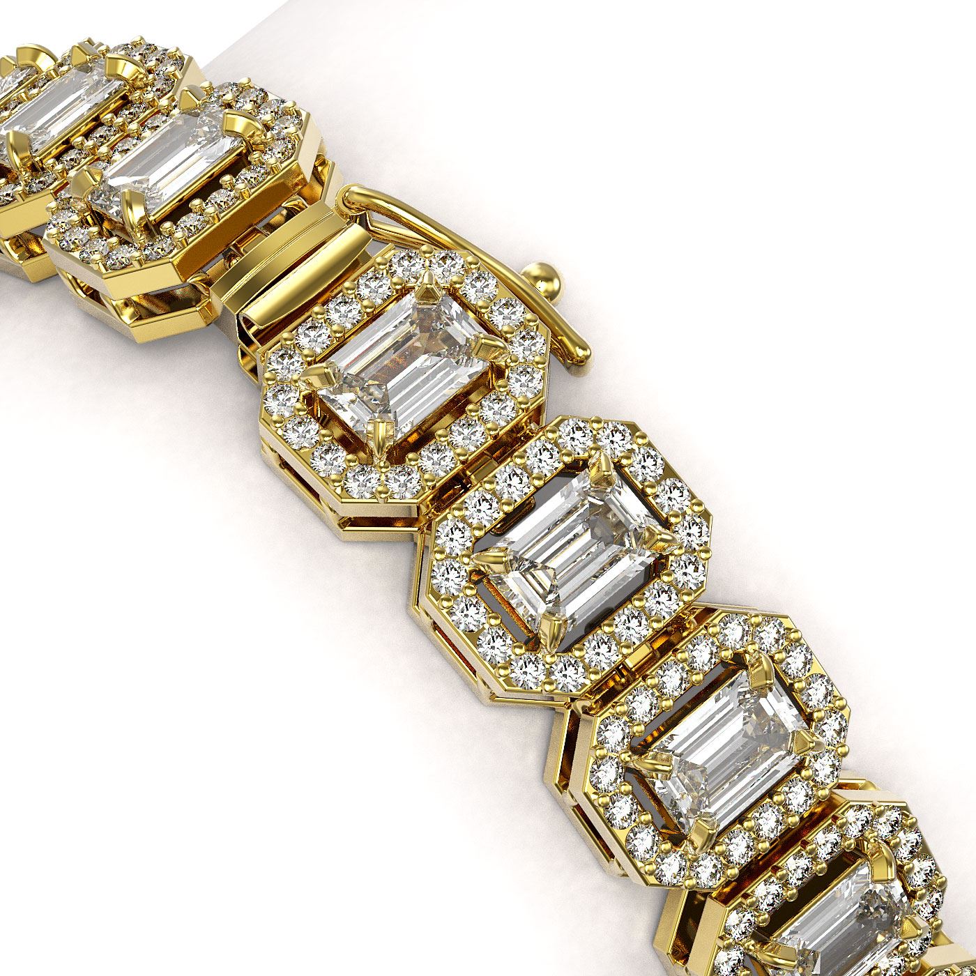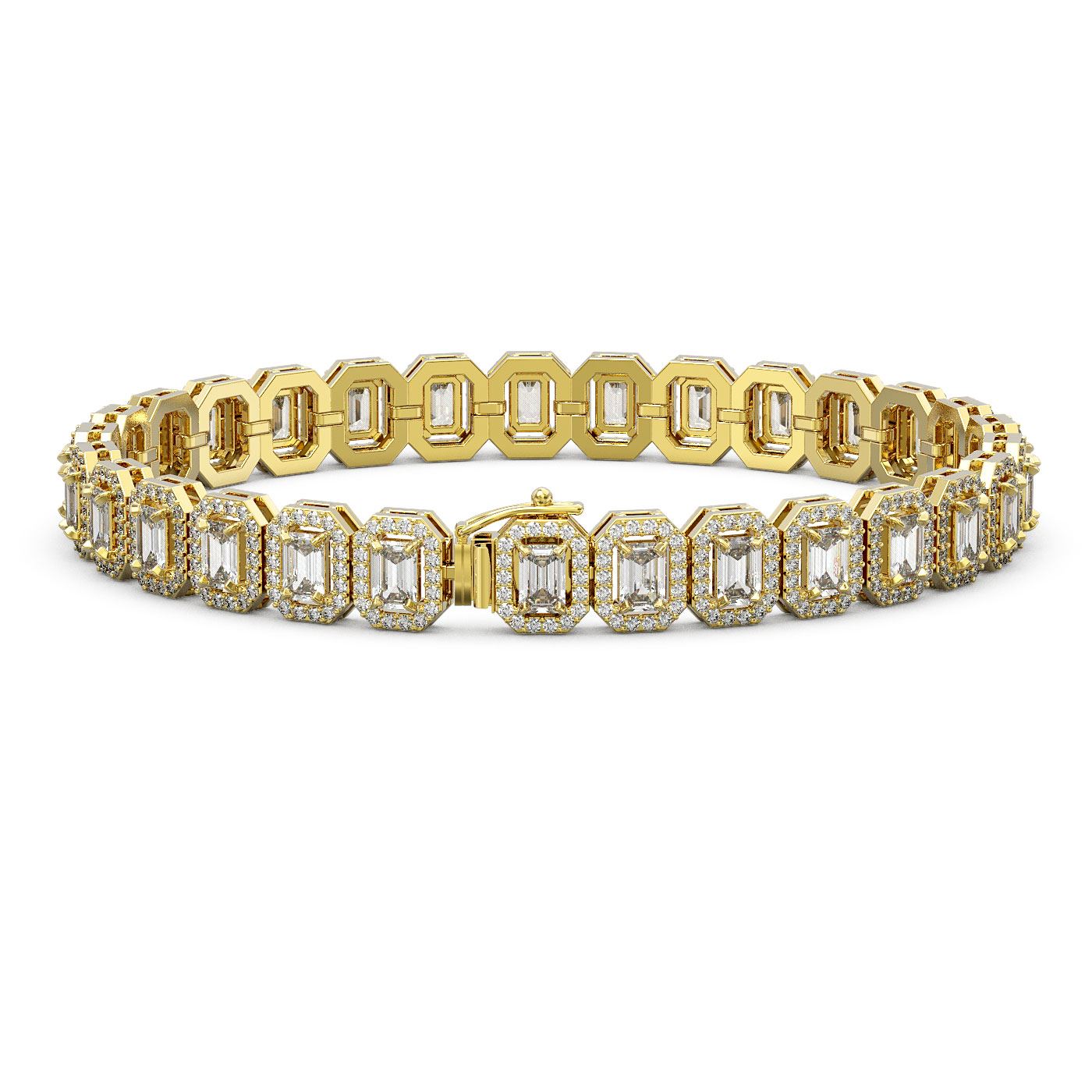 REF-1593A8N - SKU: 43114 ---- 13.56 ctw Emerald Cut Diamond Micro Pave Bracelet 18K Yellow Gold