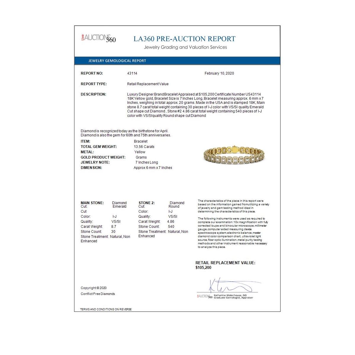 All sales are final, placing a bid is a legally binding obligation. All lots are sold as is, where is, with all the faults, imperfections, omissions and errors in the written description, estimates, appraisals, graphics and photography. USJL is not responsible for any errors or omissions in the description, graphics or photography provided or in the bidding software. Due diligence to verify the condition and description of a lot is the sole responsibility of the Bidder prior to placing any bid. Returns may only be made with the advance written authorization of USJL and are in USJL's sole discretion to approve. To request a return you must provide a written request fully explaining the basis for the return no later than 4 days after your receipt of the lot. Under no circumstances will any amounts other than the winning bid amount be refunded. A restocking charge of 19% of the full invoice amount may apply in USJL 's sole discretion. Any allowed returns must be received in exactly the same condition as when originally shipped to Buyer, or they will be returned to buyer at Buyer's cost. Any unauthorized returns will be refused. DELIVERY REFUSAL OF ITEMS SHIPPED BY US JEWELRY LIQUIDATION TO THE BIDDER CONSTITUTES AN UNAUTHORIZED RETURN IN DIRECT VIOLATION OF THESE GENERAL TERMS AND CONDITIONS.