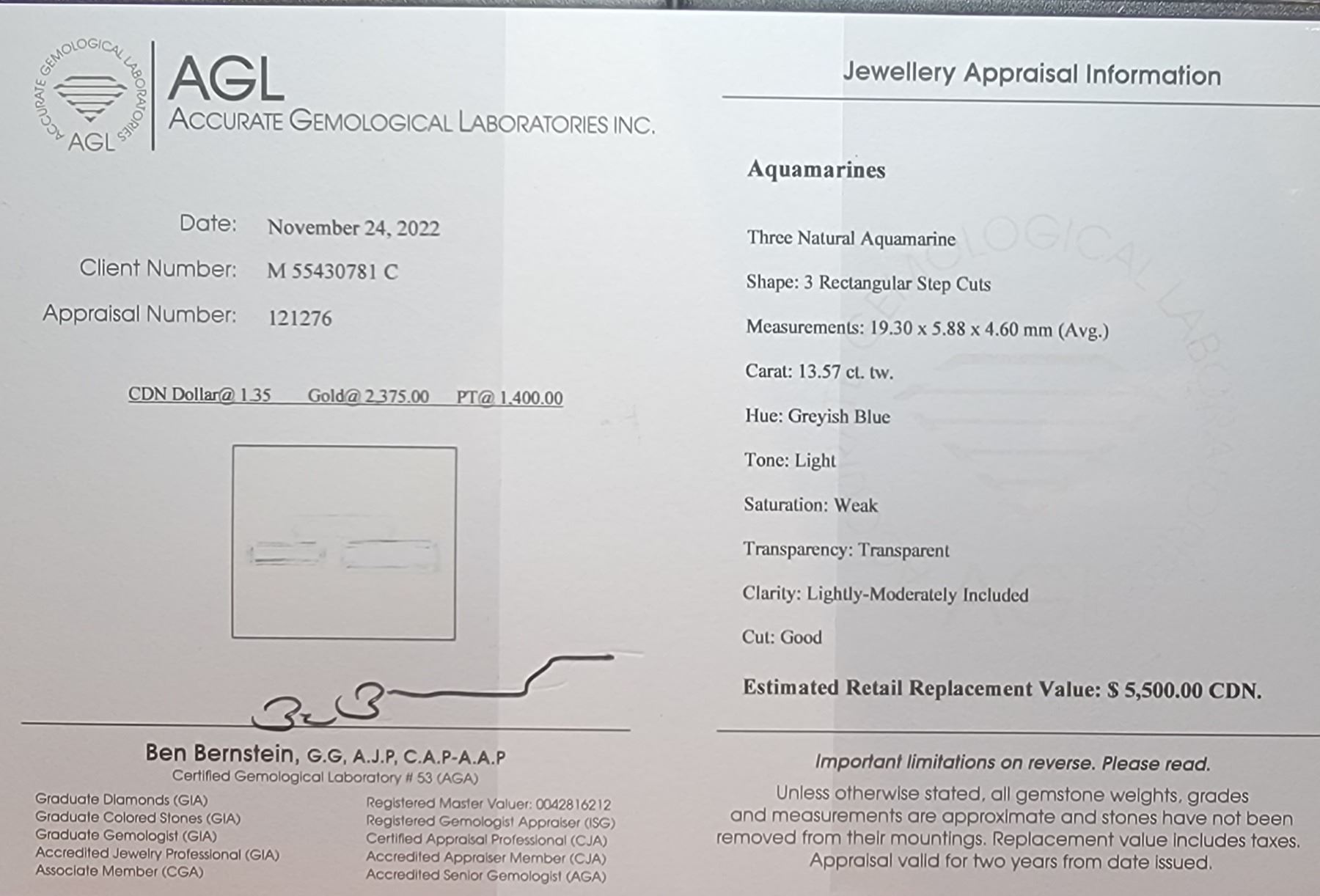 $5500 APPRAISAL, RECTANGULAR STEP CUT - INCLUDES APPRAISAL CERTIFICATE **ALL ITEMS MUST BE REMOVED BY 5PM SATURDAY, JULY 22ND 2023. ALL REMAINING ITEMS WILL BE SUBJECT TO A $6.00 PER DAY STORAGE CHARGE. ANY ITEMS REMAINING AFTER MONDAY, AUGUST 7TH, 2023 WILL BE CONSIDERED FORFEITED. NO REFUNDS WILL BE ISSUED FOR FORFEITED ITEMS. TO SCHEDULE A PICK UP APPOINTMENT CLICK HERE