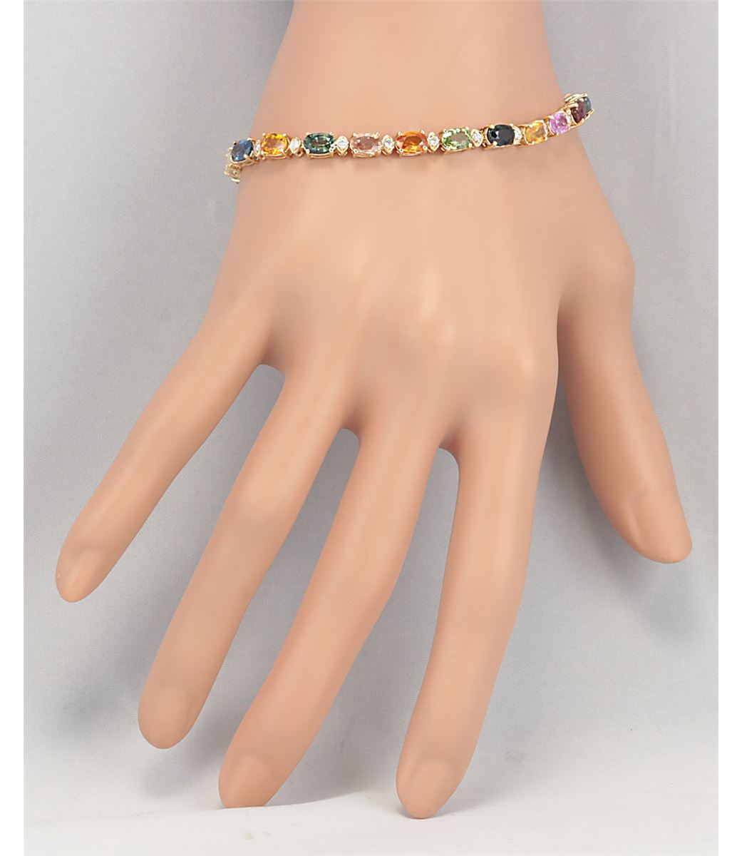 Stamped: 14K Bracelet Width: 4.70mm Bracelet Length: 7.4 Inches Total Bracelet Weight: 9 Grams Diamond Weight: Total natural diamond weight is .55carat. SI1-SI2 clarity / G-H color Gemstone Weight: Total Natural Sapphire Weight is 13.02ctw (6x4) Main stone color: Blue [SKU:702201]