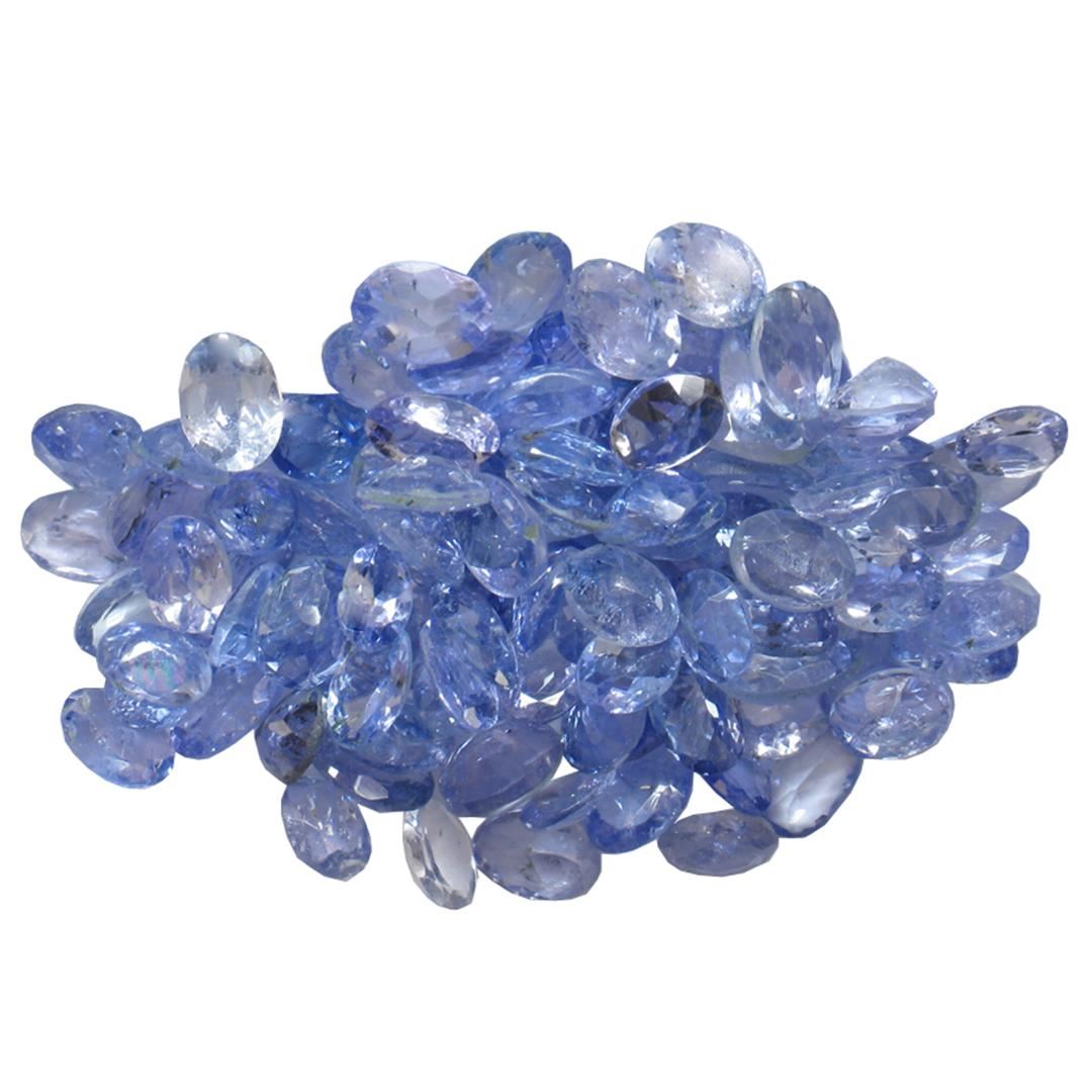 One hundred nine oval mixed cut natural tanzanites, measuring 4.00 x 2.50 x 1.63mm, exact total weight 13.57ct., clarity is slightly included, type I, medium, very slightly grayish, bluish violet color, (GIA bV 5/3), cut is good. Transmitting light with a minimum of distortion, transparent, Naturally occurring internal & external characteristics are present. Measurements & the color grade are an average for the group. Tanzanite is a very rare gemstone that is only found in the country of Tanzania. Originally discovered in 1967. Tiffany & Company, named the stone Tanzanite. It is found in the Usumburu Mountains that border the Umba Valley of northern Tanzania. Tanzanite occurs in gray, brown, violet, blue, reddish-purple, & green. The gem is interesting because of its exceptional pleochroism. Rotated in different directions a tanzanite will exhibit multiple changes of color. Tanzanite has a low tolerance to ultrasonic cleaning, and should not be cleaned using this method. Westfield Appraised at $1,305.00.