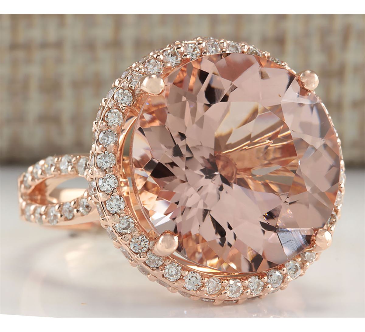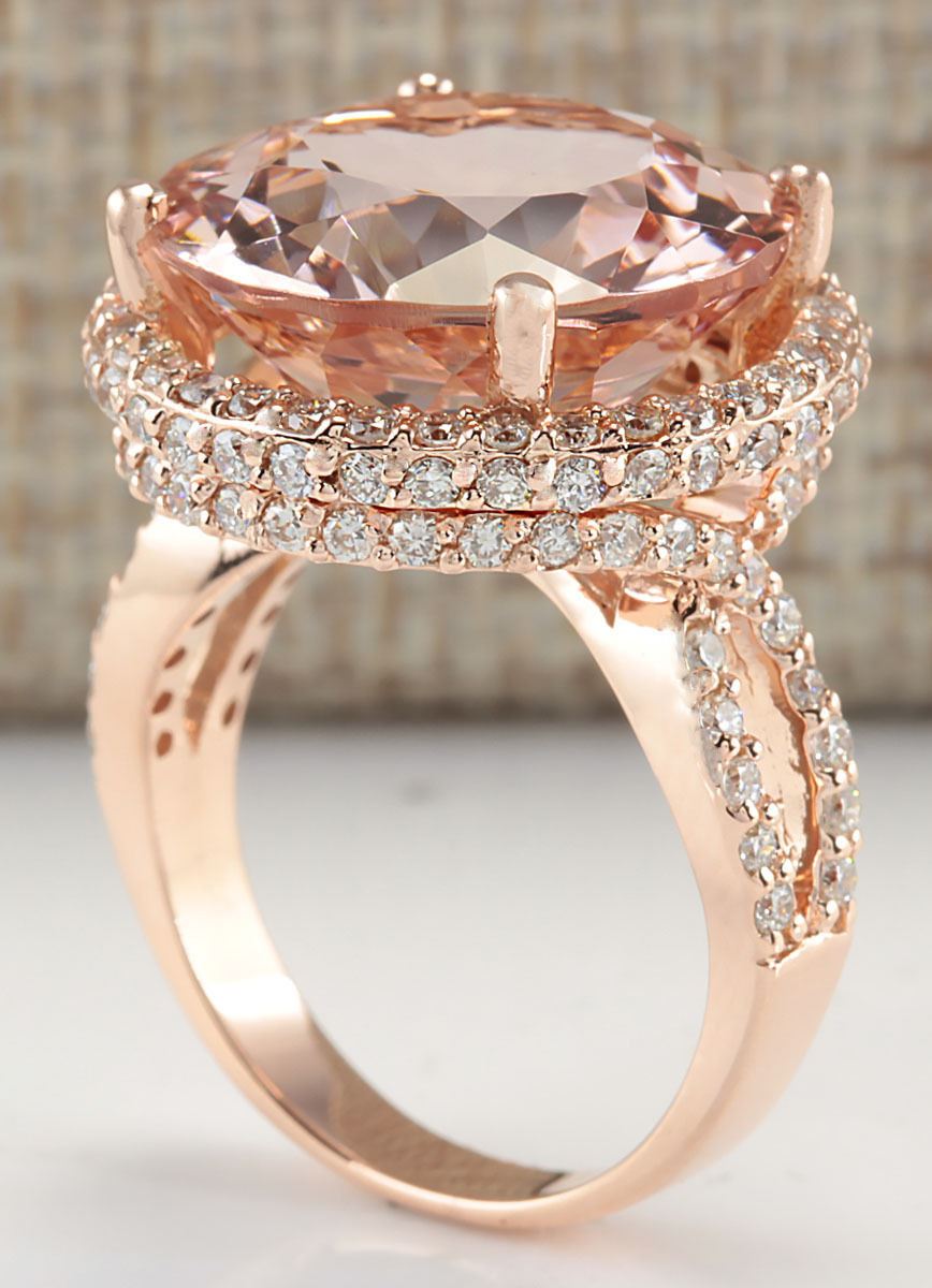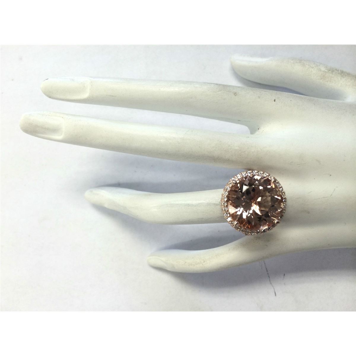 Stamped: 14K Ring Size: 7 Total Ring Weight: 8.5 Grams Diamond Weight: Total natural diamond weight is 1.50carat. SI1-SI2 clarity / G-H color Gemstone Weight: Total Natural Morganite Weight is 12.08ctw (Measures: 15.95x16.00mm) Face Measures: 19.62x19.90mm Main stone color: Peach [SKU:702290]