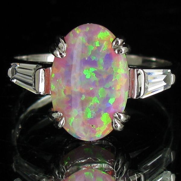 13.61twc Lab Opal/Diamond White Gold Vermeil/925 Ring (JEW-3983)