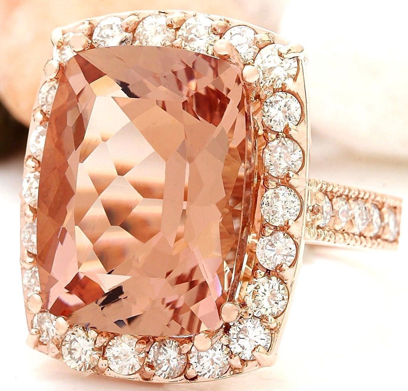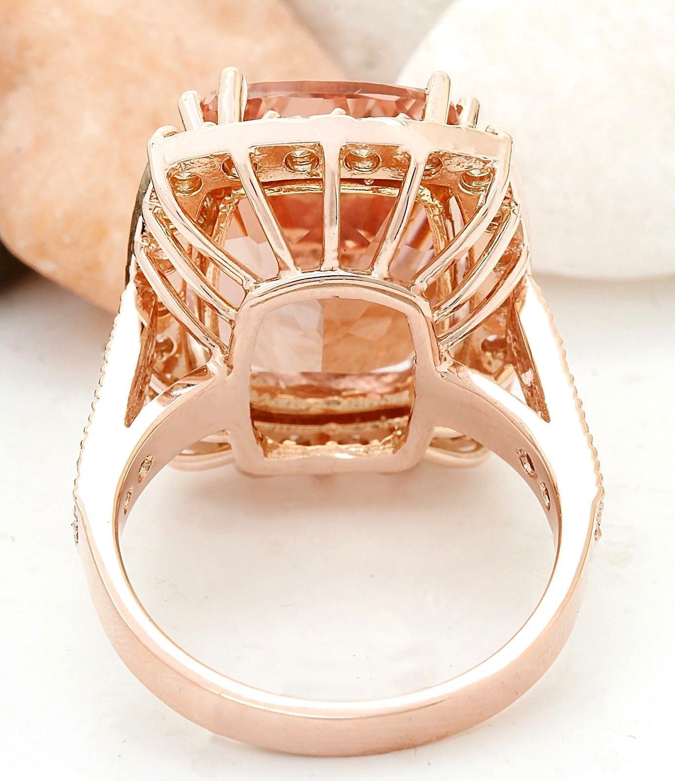13.63 Carat Natural Morganite 14K Solid Rose Gold Diamond Ring