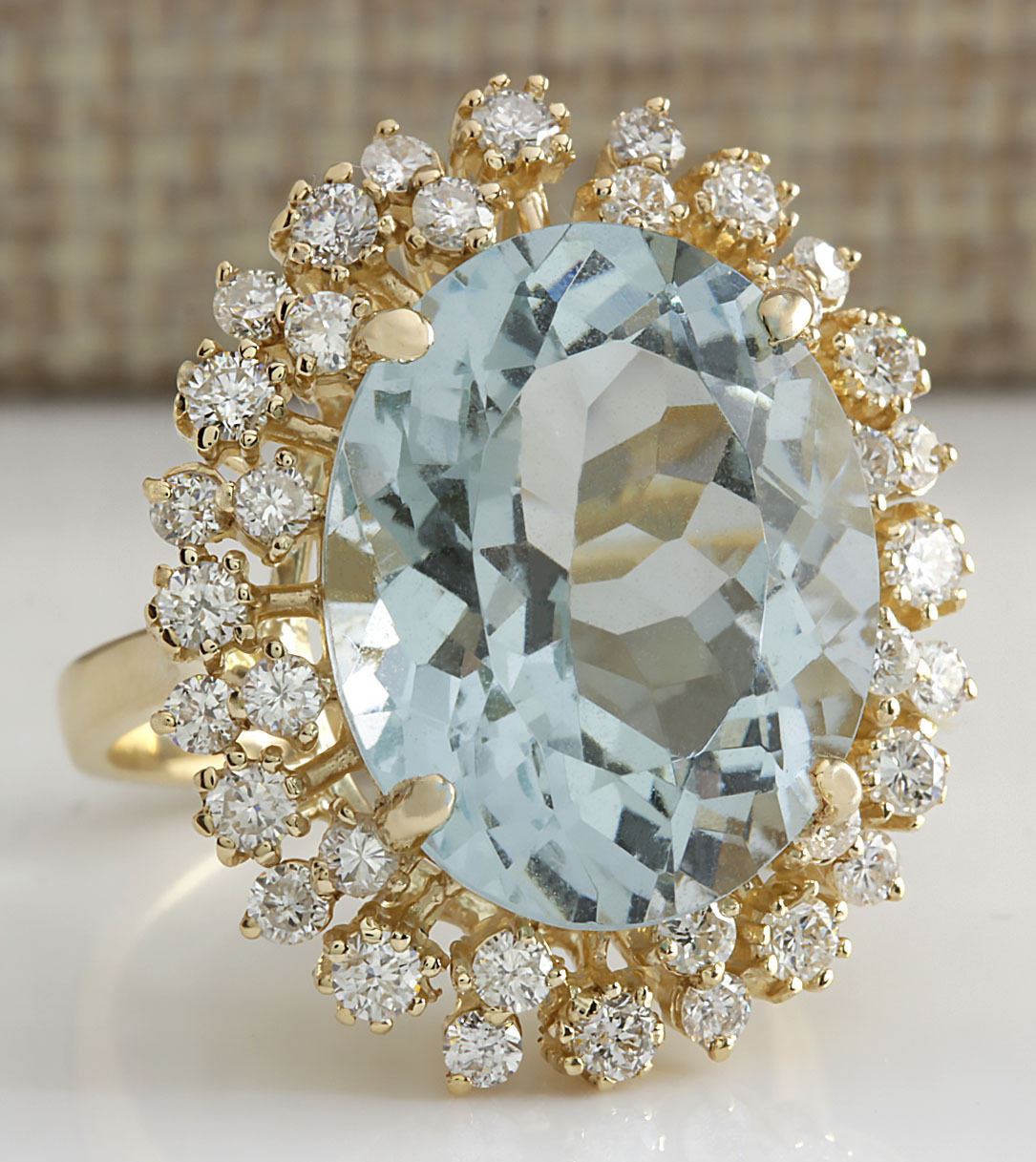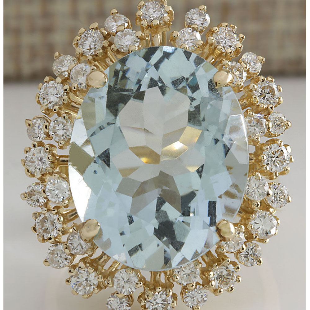 13.65 CTW Natural Aquamarine And Diamond Ring In 14K Solid Yellow Gold