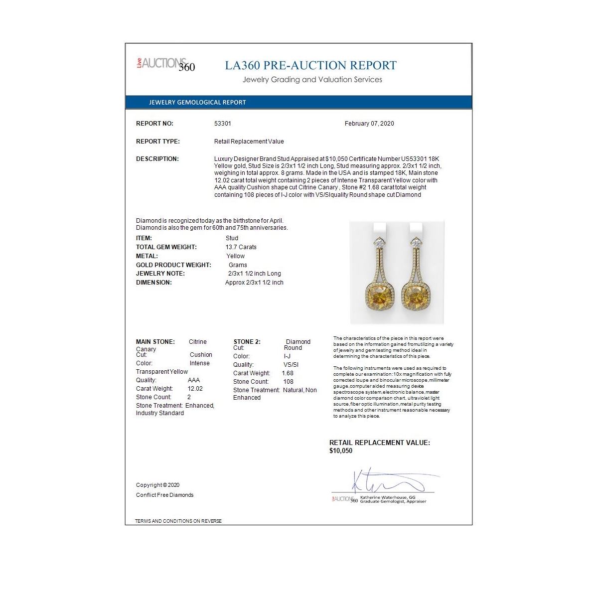 REF-228F8M - SKU: 53301 ---- 13.7 ctw Canary Citrine & Diamond Earrings 18K Yellow Gold
