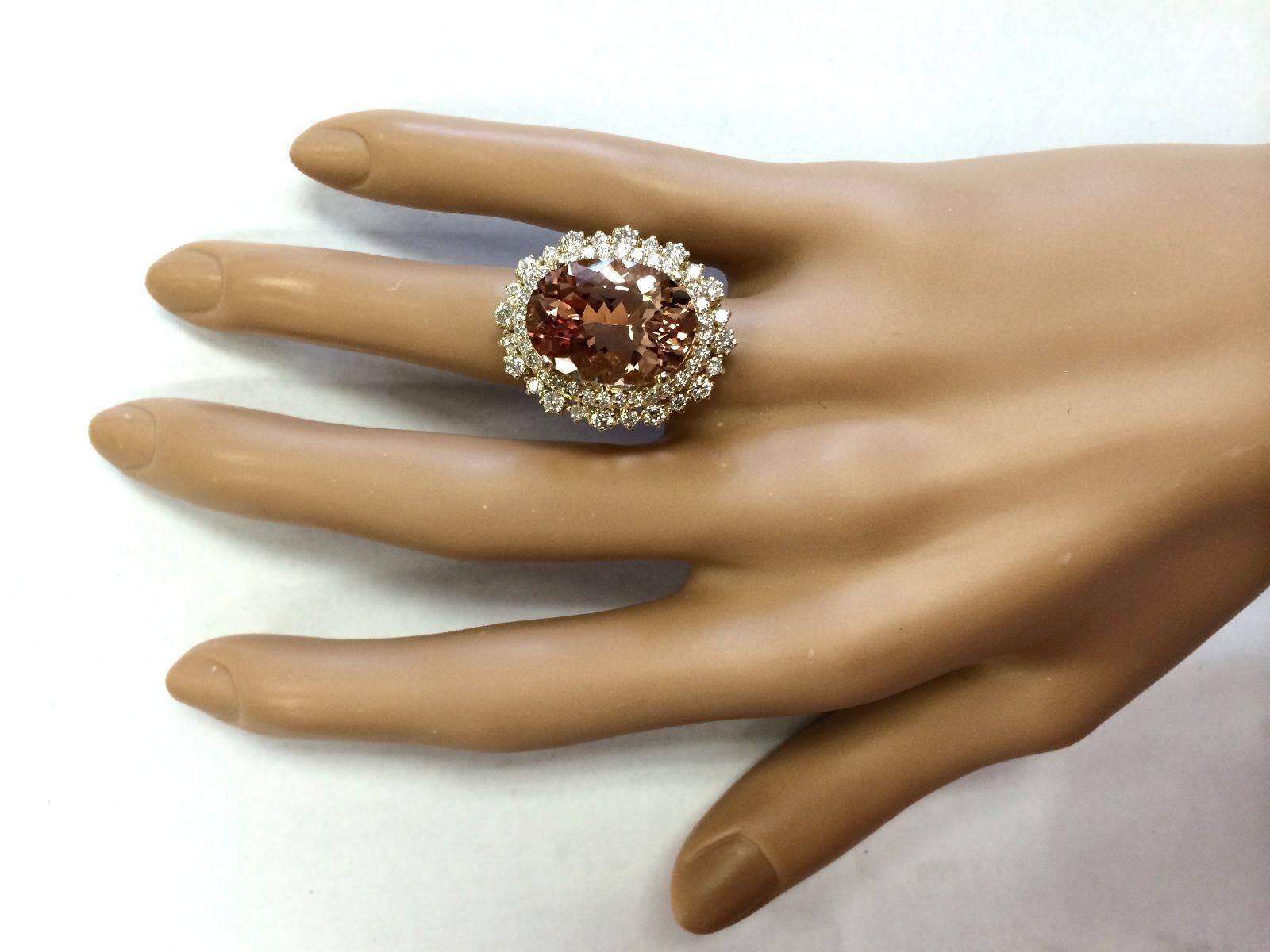 13.70 CTW Natural Morganite And Diamond Ring In 14k Solid Yellow Gold