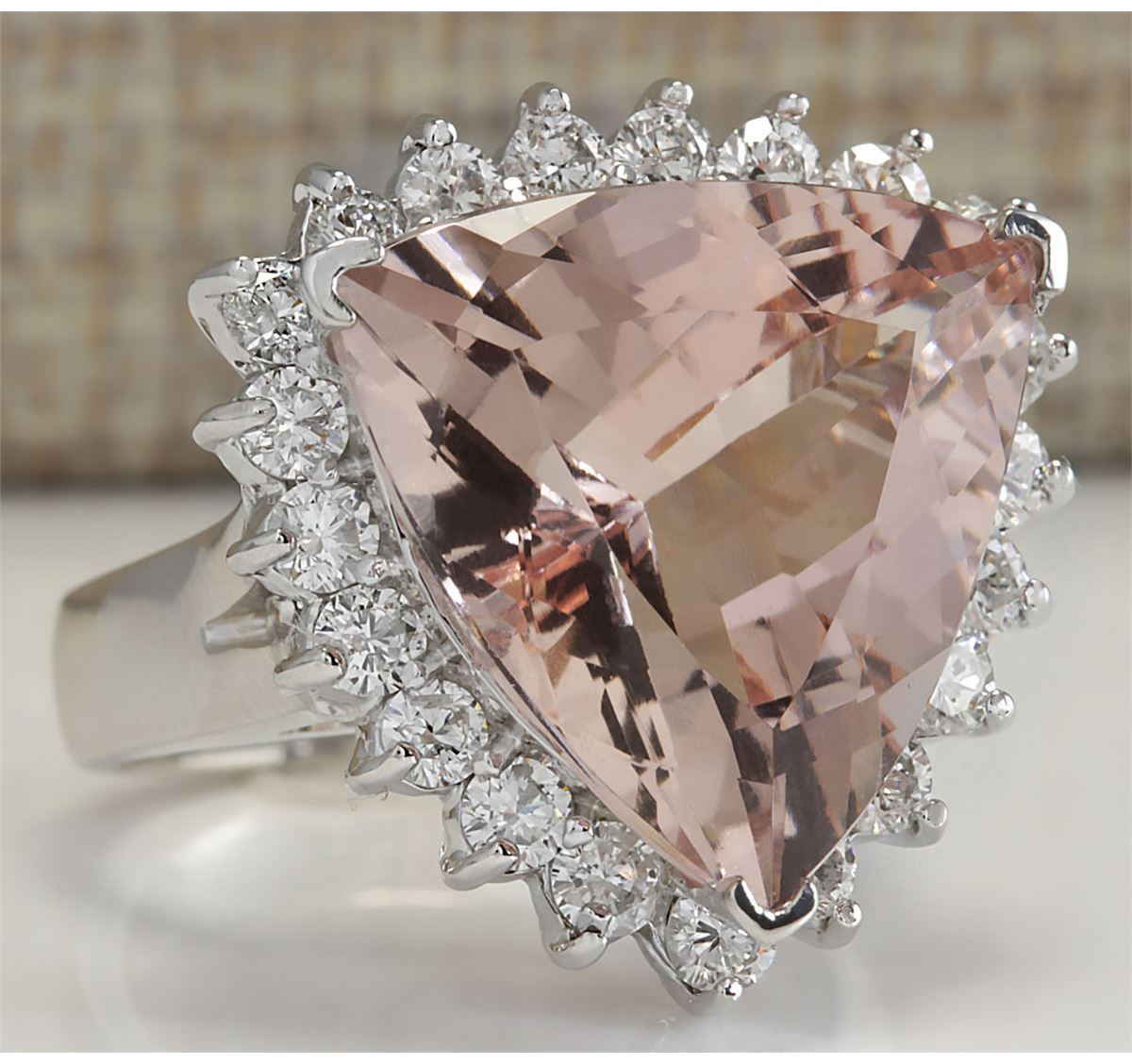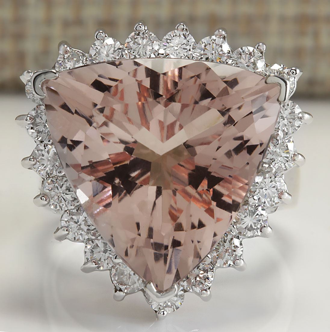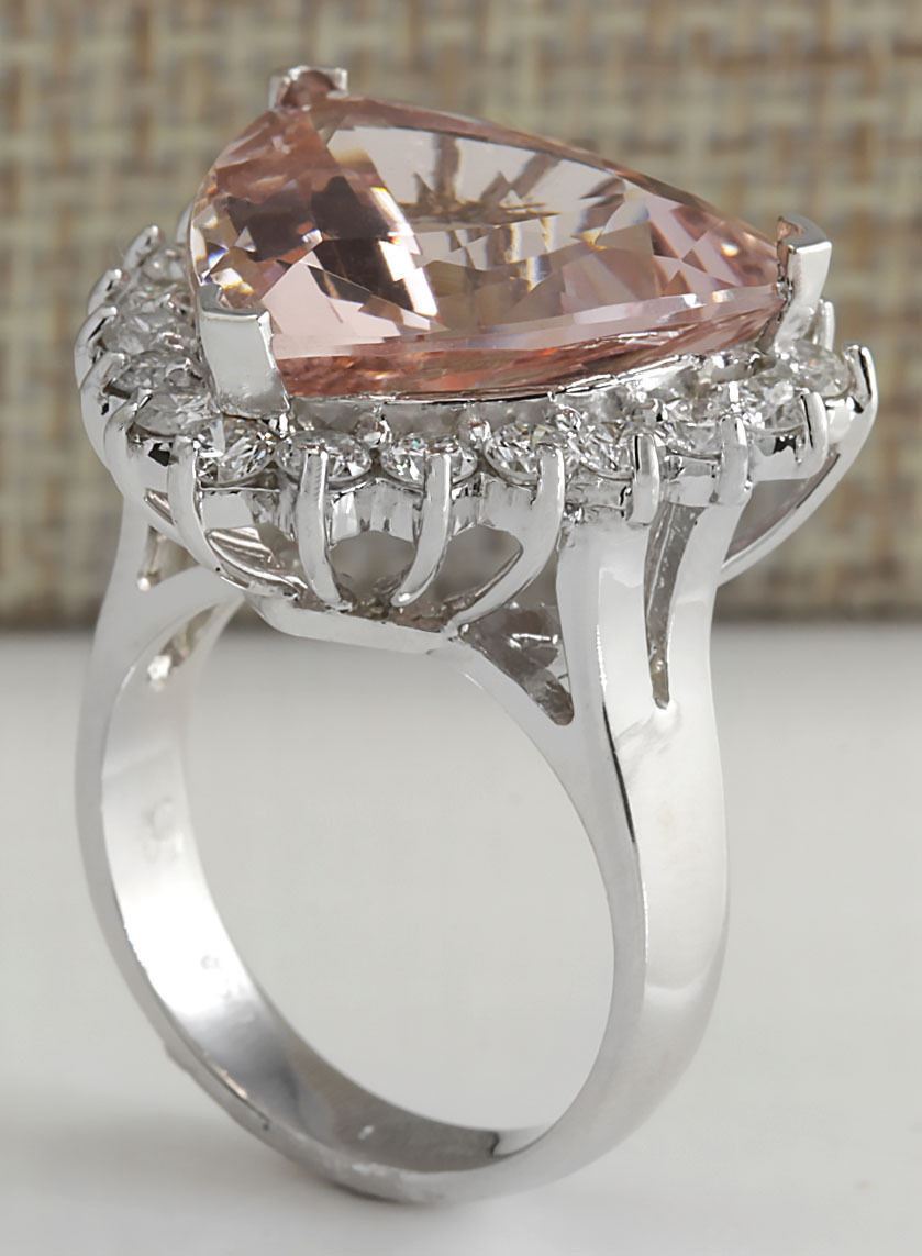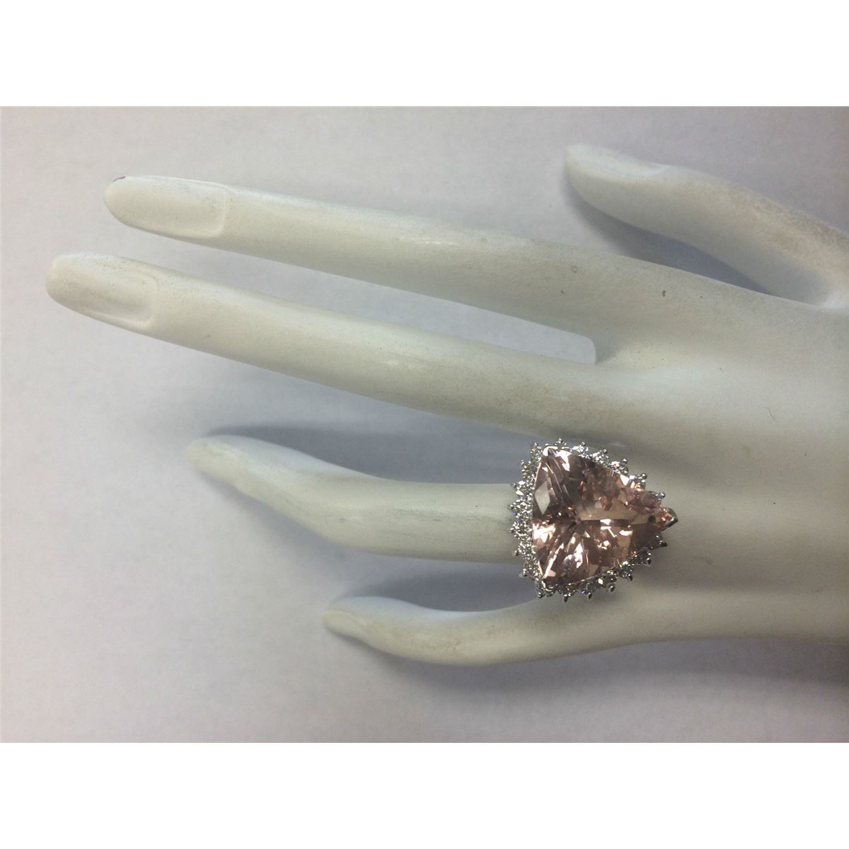 Stamped: 14K Ring Size: 6.5 Total Ring Weight: 9.6 Grams Diamond Weight: Total natural diamond weight is 1.36carat. SI1-SI2 clarity / G-H color Gemstone Weight: Total Natural Peach Morganite Weight is 12.36ctw (Measures: 17.60x16.18mm) Face Measures: 21.91x21.54mm Main stone color: Peach [SKU:703060]