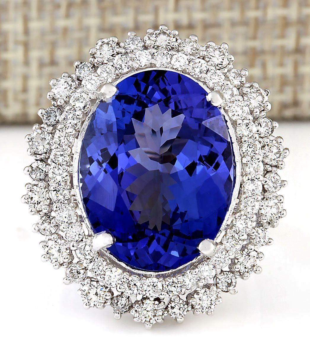 13.75 CTW Natural Blue Tanzanite And Diamond Ring 14k Solid White Gold