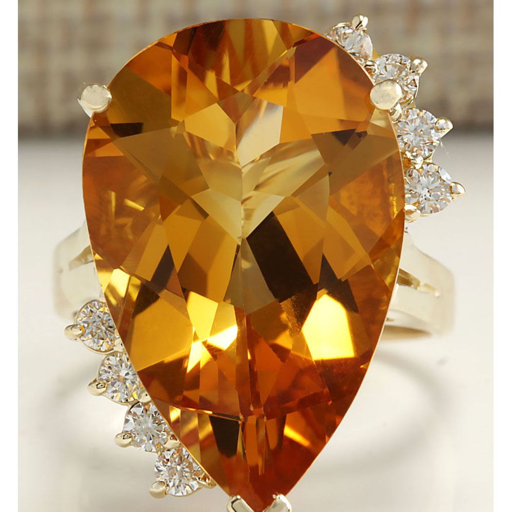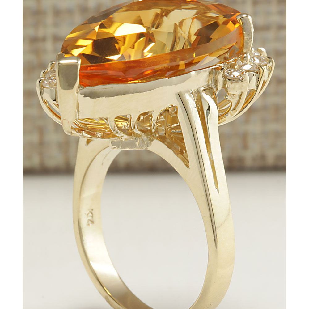 13.75 CTW Natural Citrine And Diamond Ring 14K Solid Yellow Gold