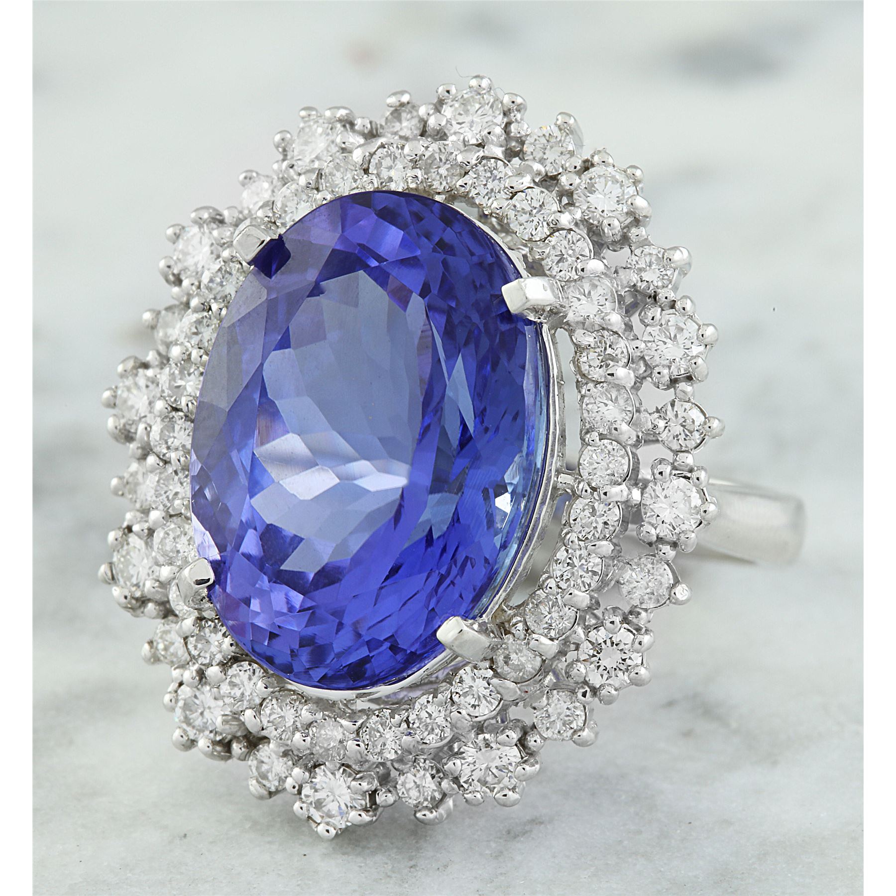 13.75 CTW Tanzanite 18K White Gold Diamond Ring