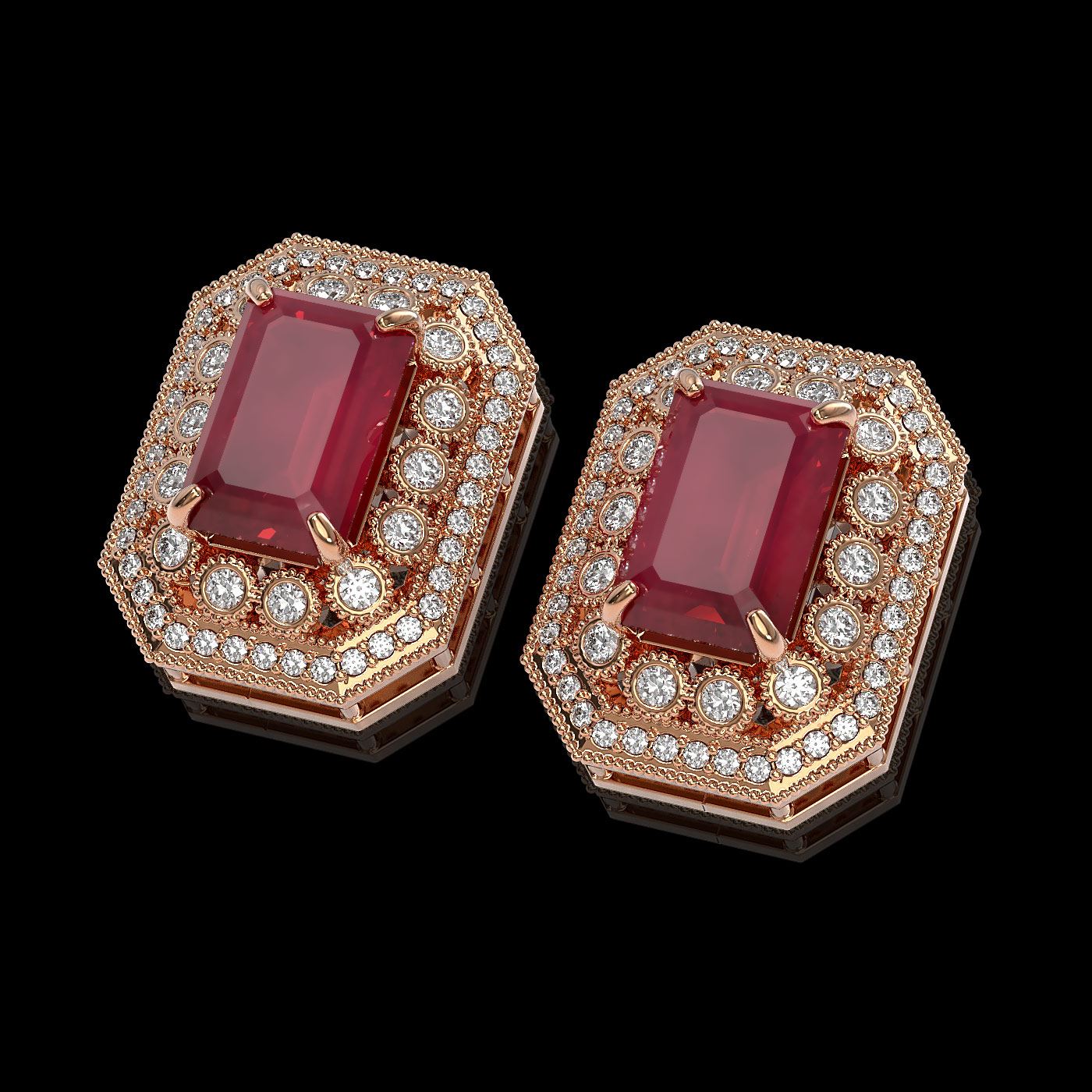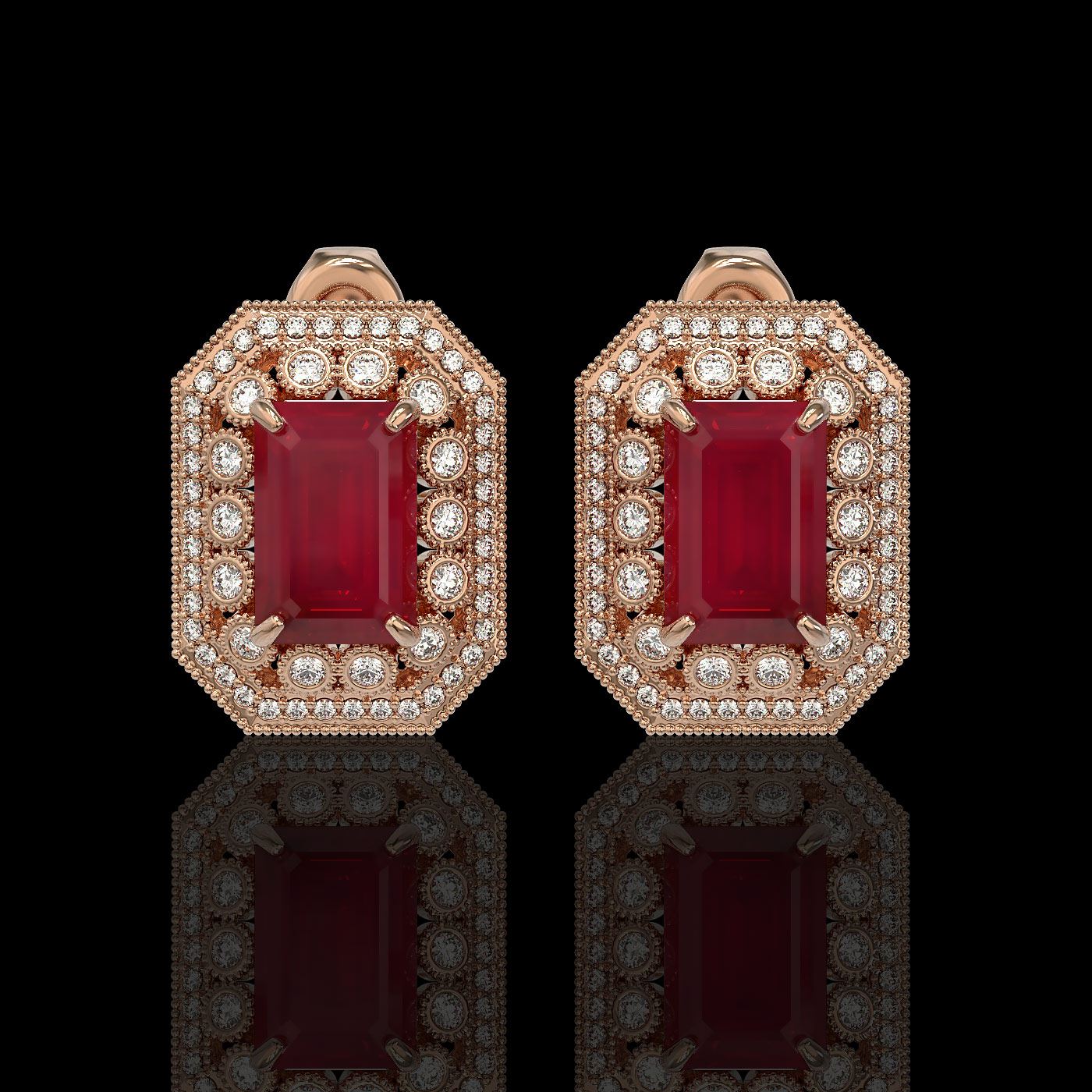 REF-266R4K - SKU: 43416 ---- 13.75 ctw Certified Ruby & Diamond Victorian Earrings 14K Rose Gold